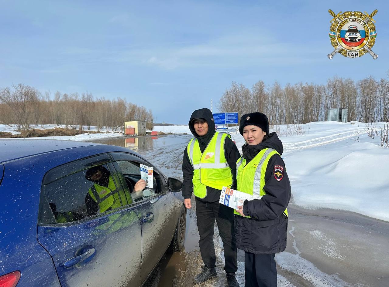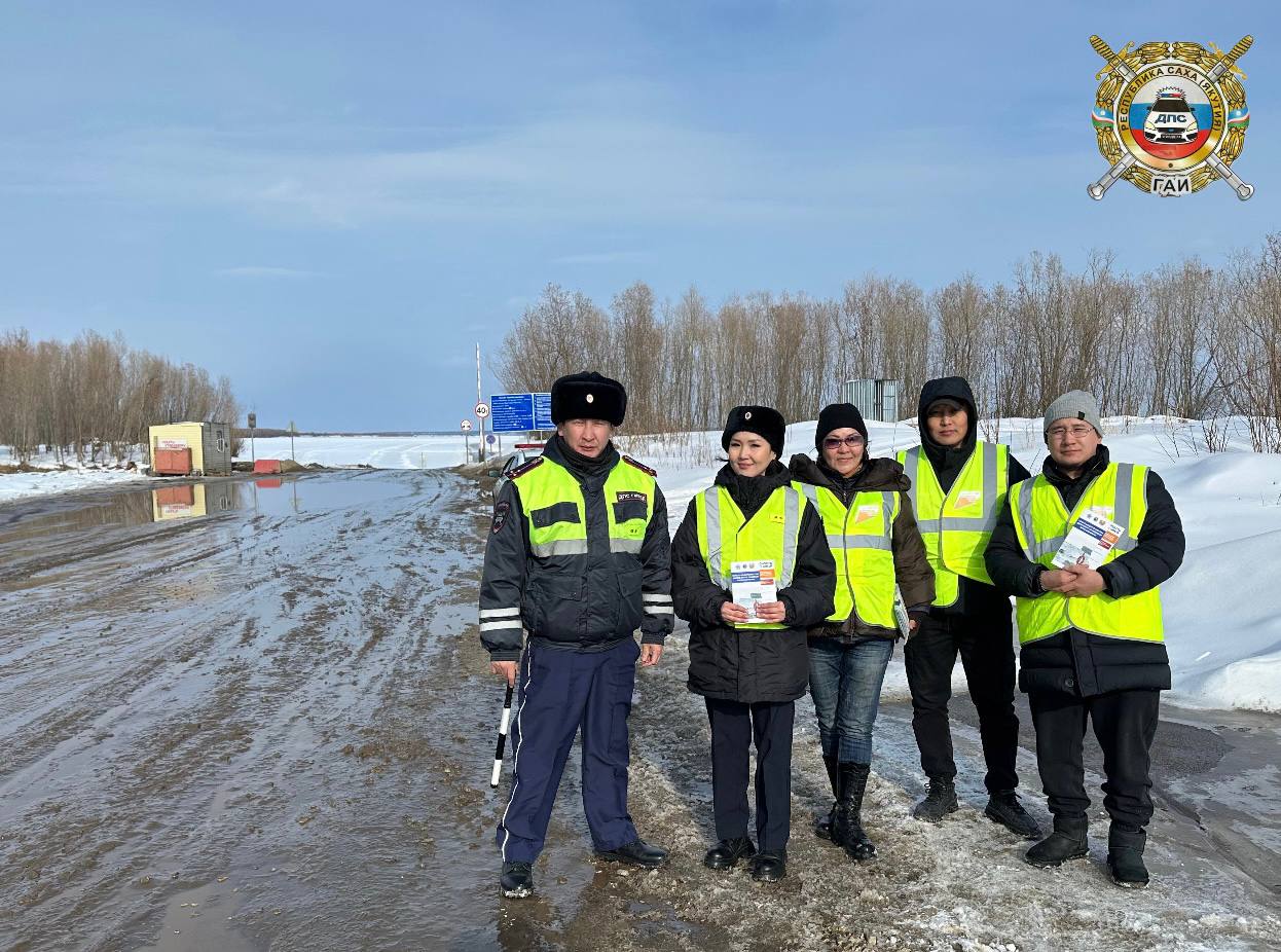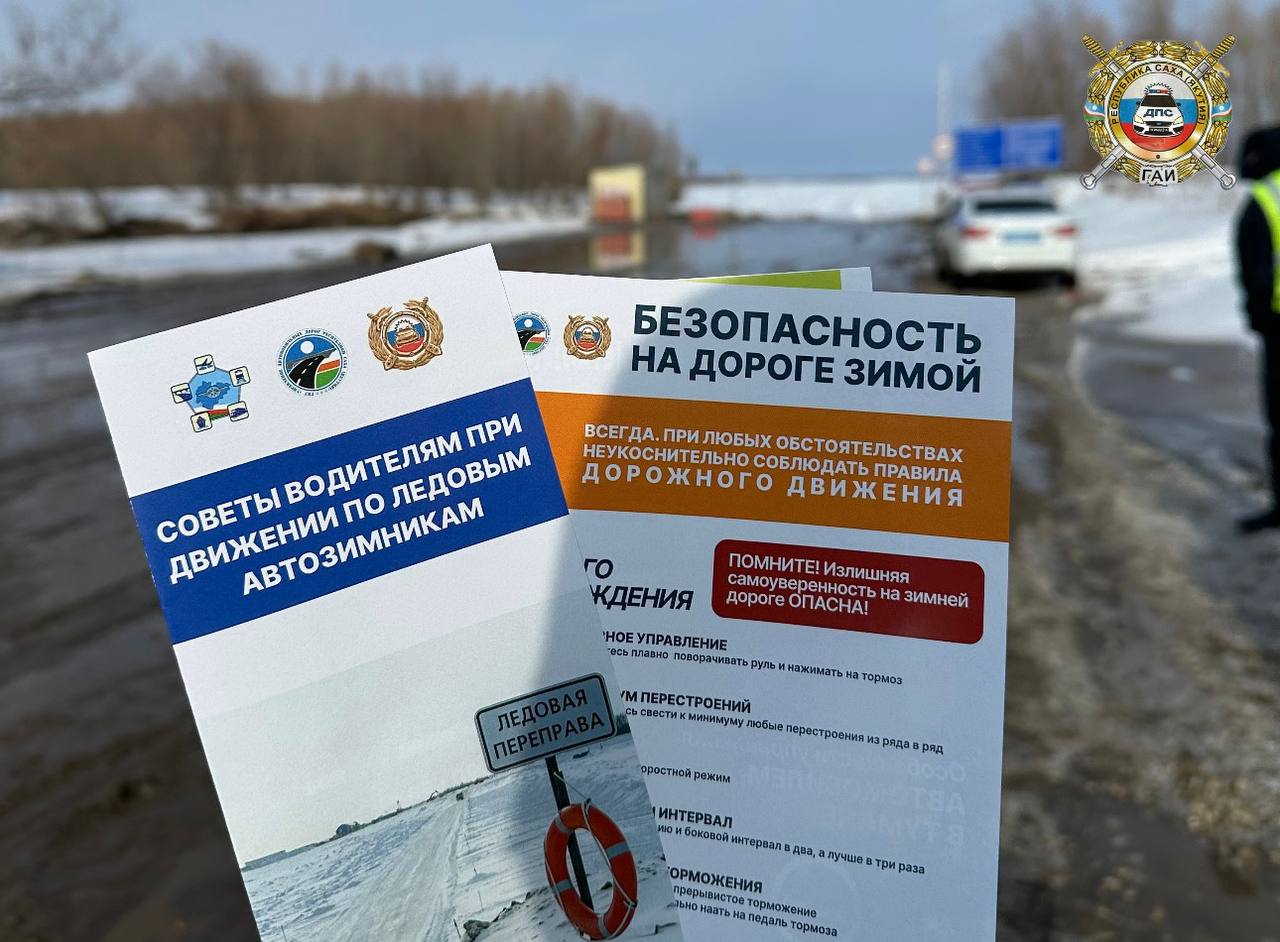 Сотрудники Госавтоинспекции совместно со специалистами ГКУ «Управтодор РС(Я)» провели профилактическую акцию «Безопасный лед» на ледовой переправе через реку Лена «Хатассы-Павловск»