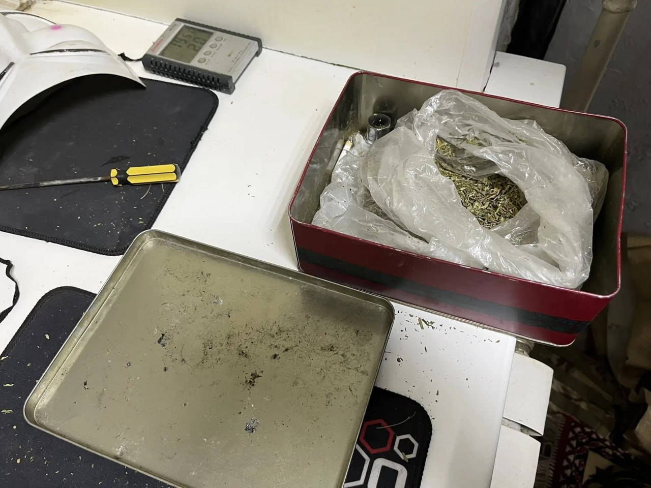 В ходе осмотра домовладения мужчины полицейские обнаружили в его комнате на подоконнике металлическую коробку, в которой находились полимерный пакет с измельченной растительной массой с характерным запахом марихуаны и самодельное устройство для курения наркотиков с наслоениями бурого цвета. Еще один пакет с аналогичным содержимым и электронные весы были найдены в шкафу. Кроме этого, оперативники нашли у задержанного 5 бутылок специального удобрения и множество различных приспособлений и оборудований для выращивания и сушки растений.