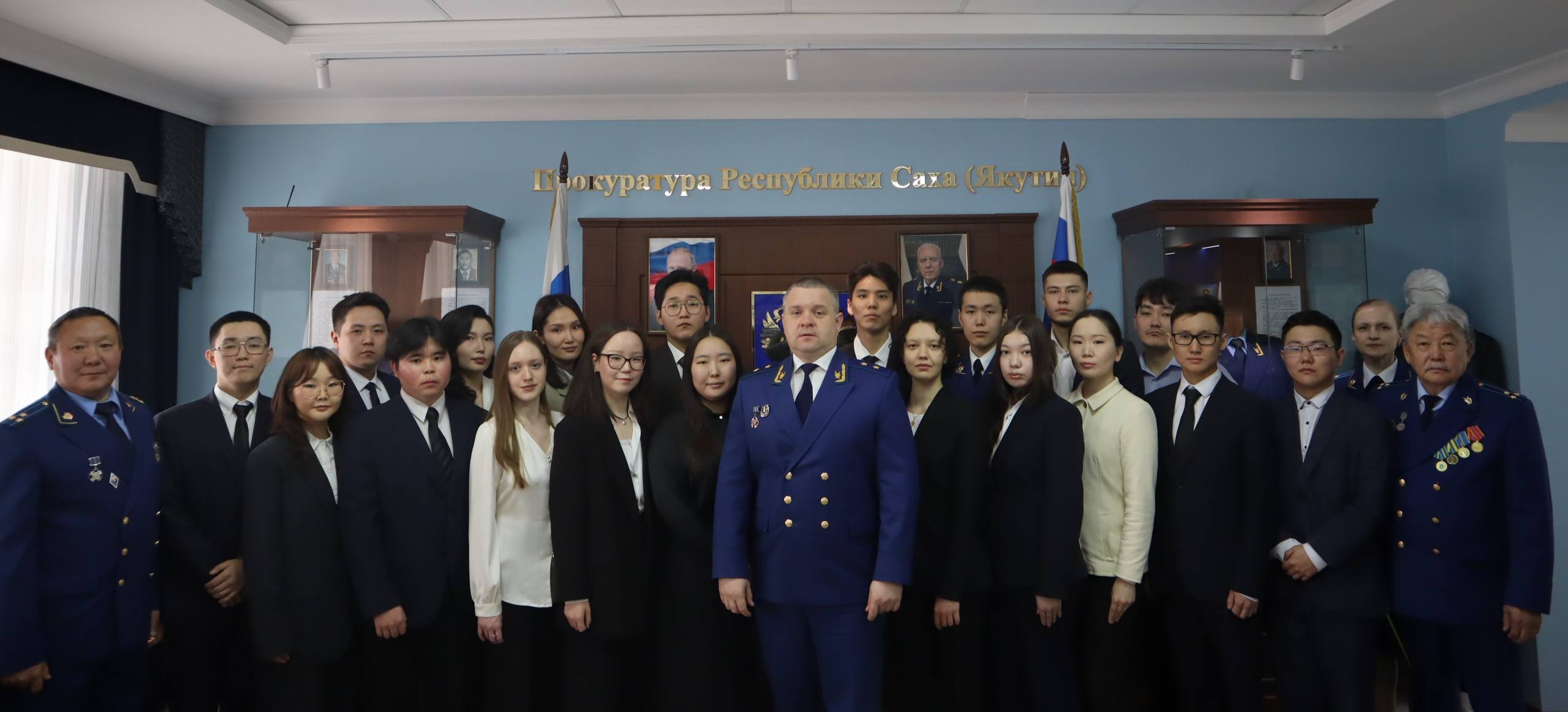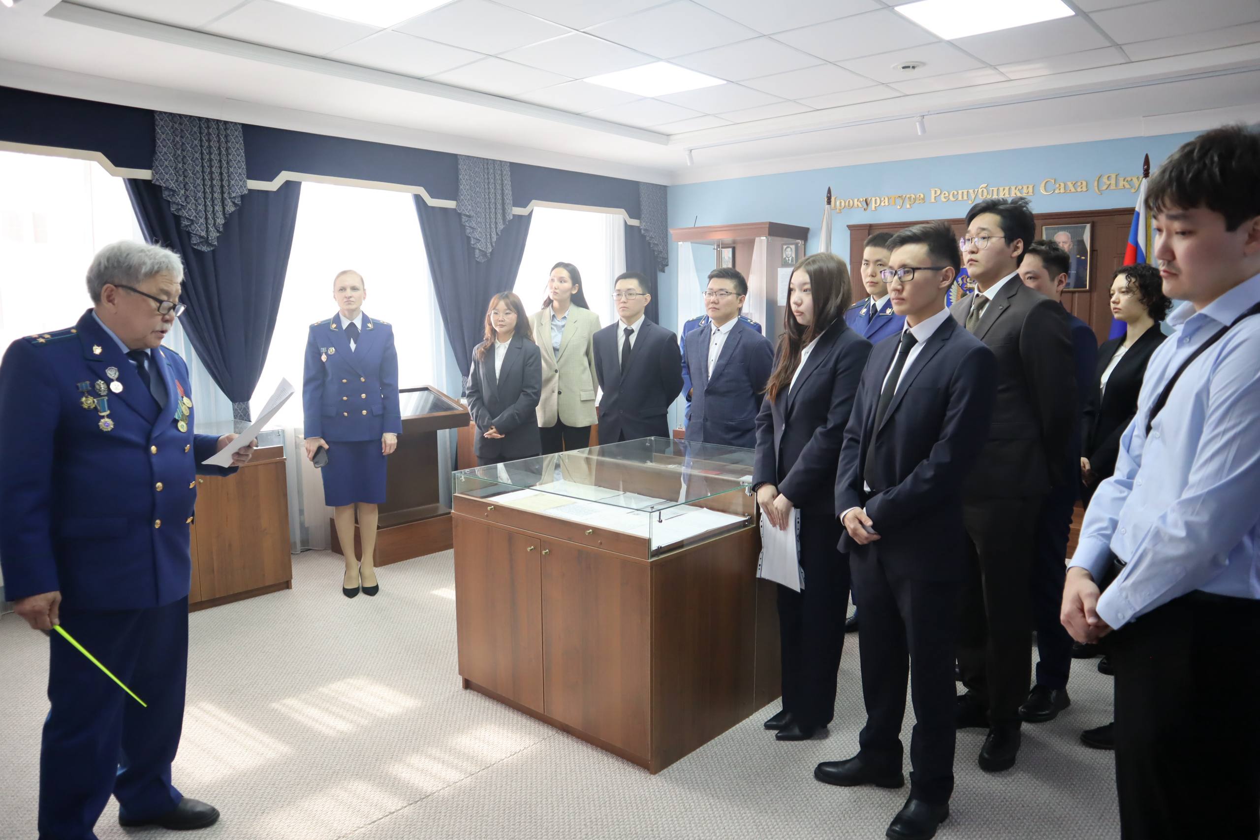 Перед студентами выступил молодой специалист, помощник прокурора г. Якутска Евгений Александров, признанный «Лучшим по профессии» по итогам работы за 2025 год. Он получил высшее юридическое образование в рамках целевой подготовки, прошел срочную военную службу по призыву.Студенты и молодые специалисты посетили музей прокуратуры республики, с неподдельным интересом обсудили исторические моменты деятельности прокуратуры России.