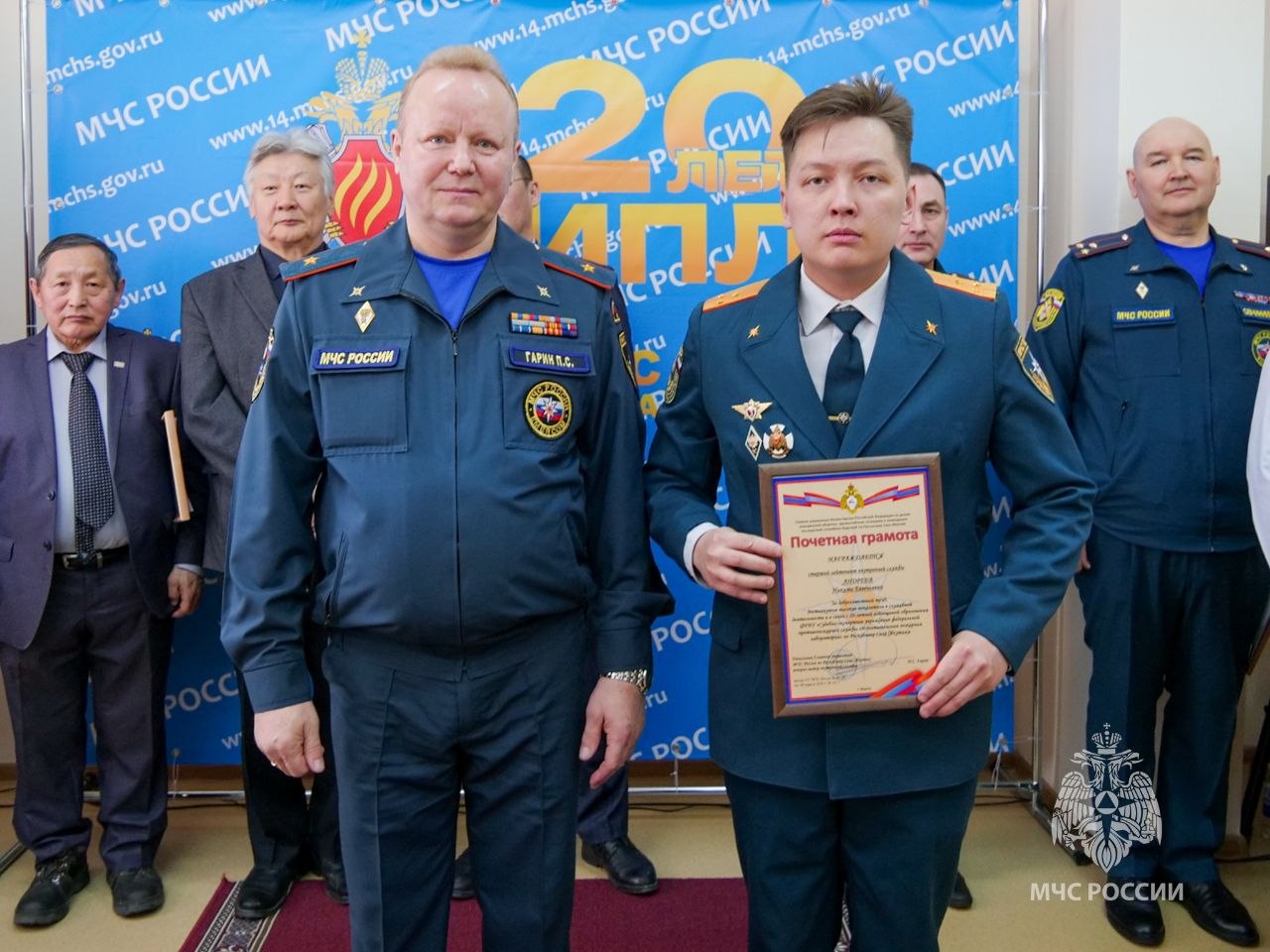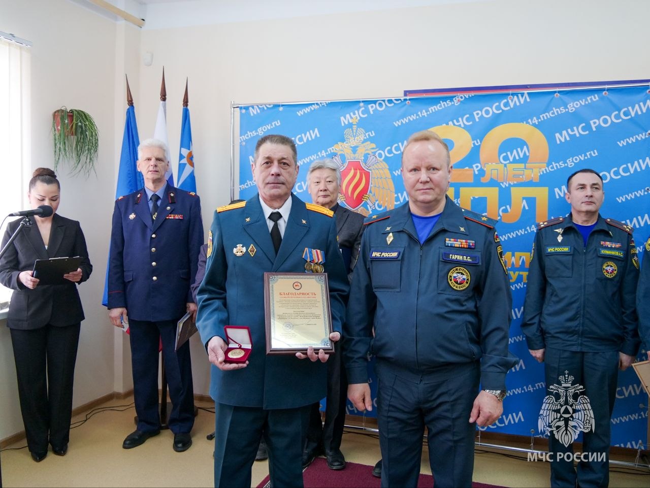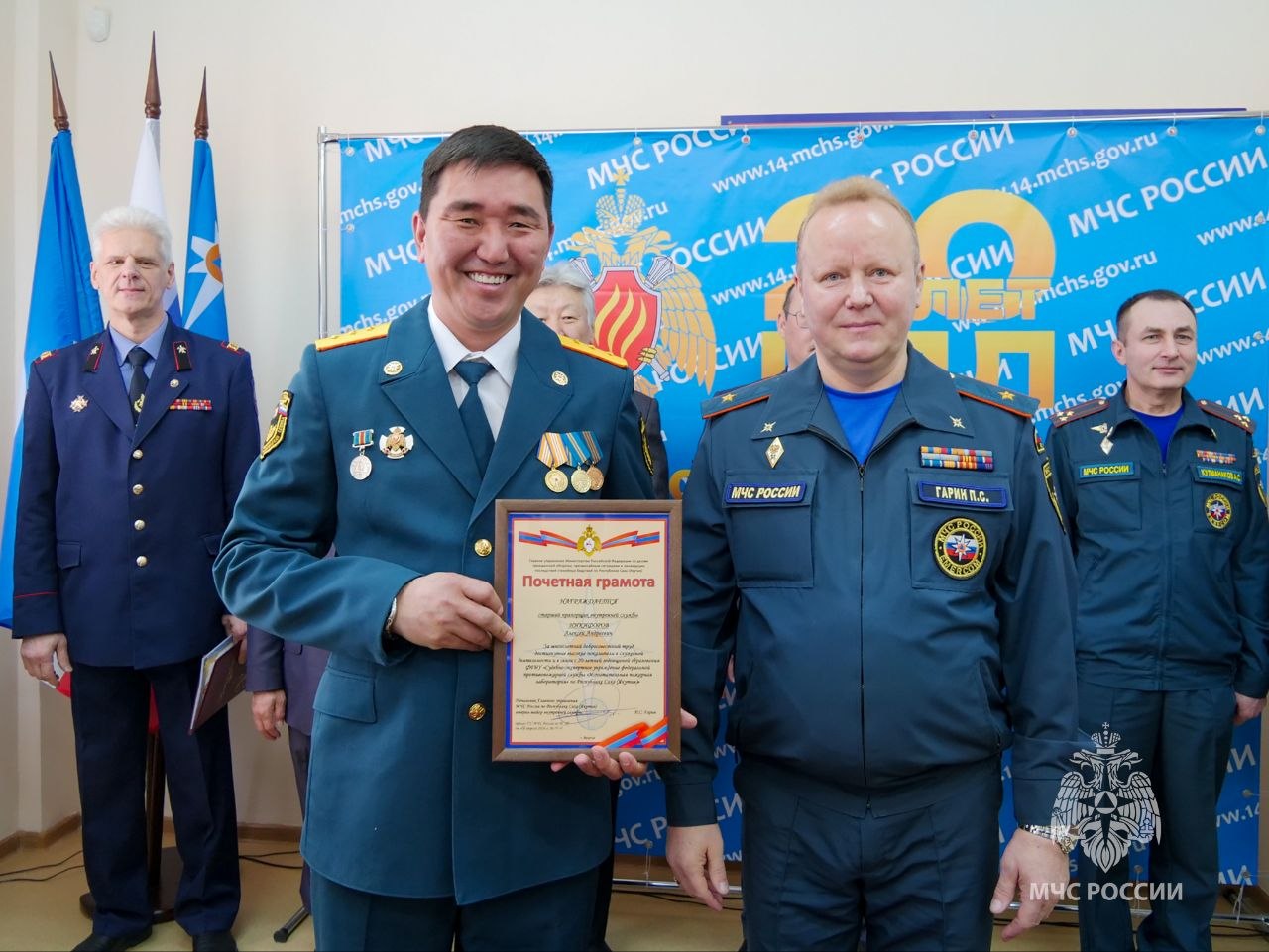 На торжественном мероприятии сотрудников поздравил начальник Главного управления МЧС России по РС(Я) генералмайор Павел Гарин — лучшим работникам вручили награды и благодарственные письма.