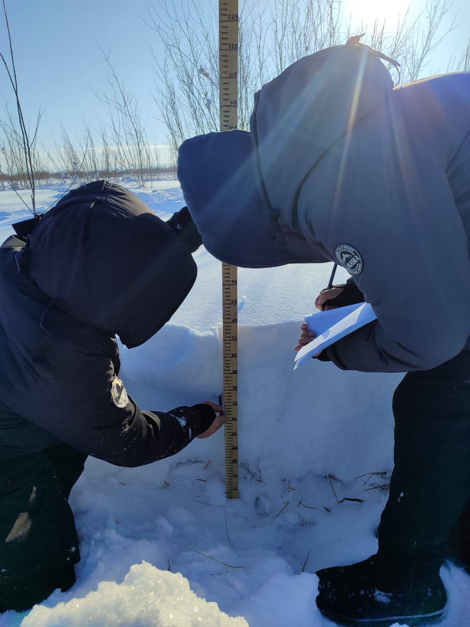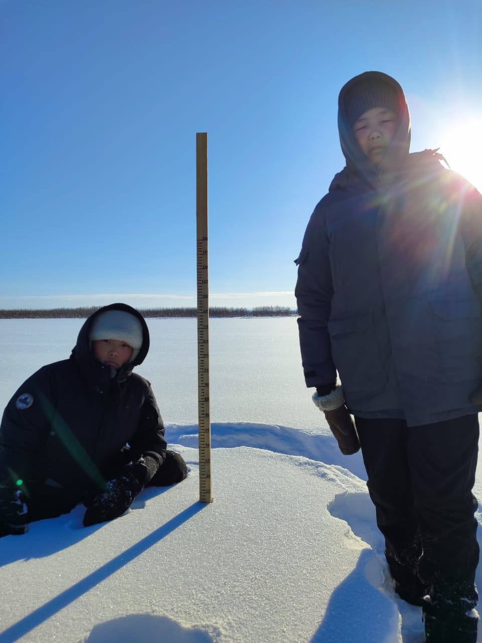 Ребята измерили глубину снега, узнали о различных его видах и проанализировали, как нынешняя многоснежная зима повлияла на лошадей. Замеры проводились на озере, на сенокосных угодьях и в лесу