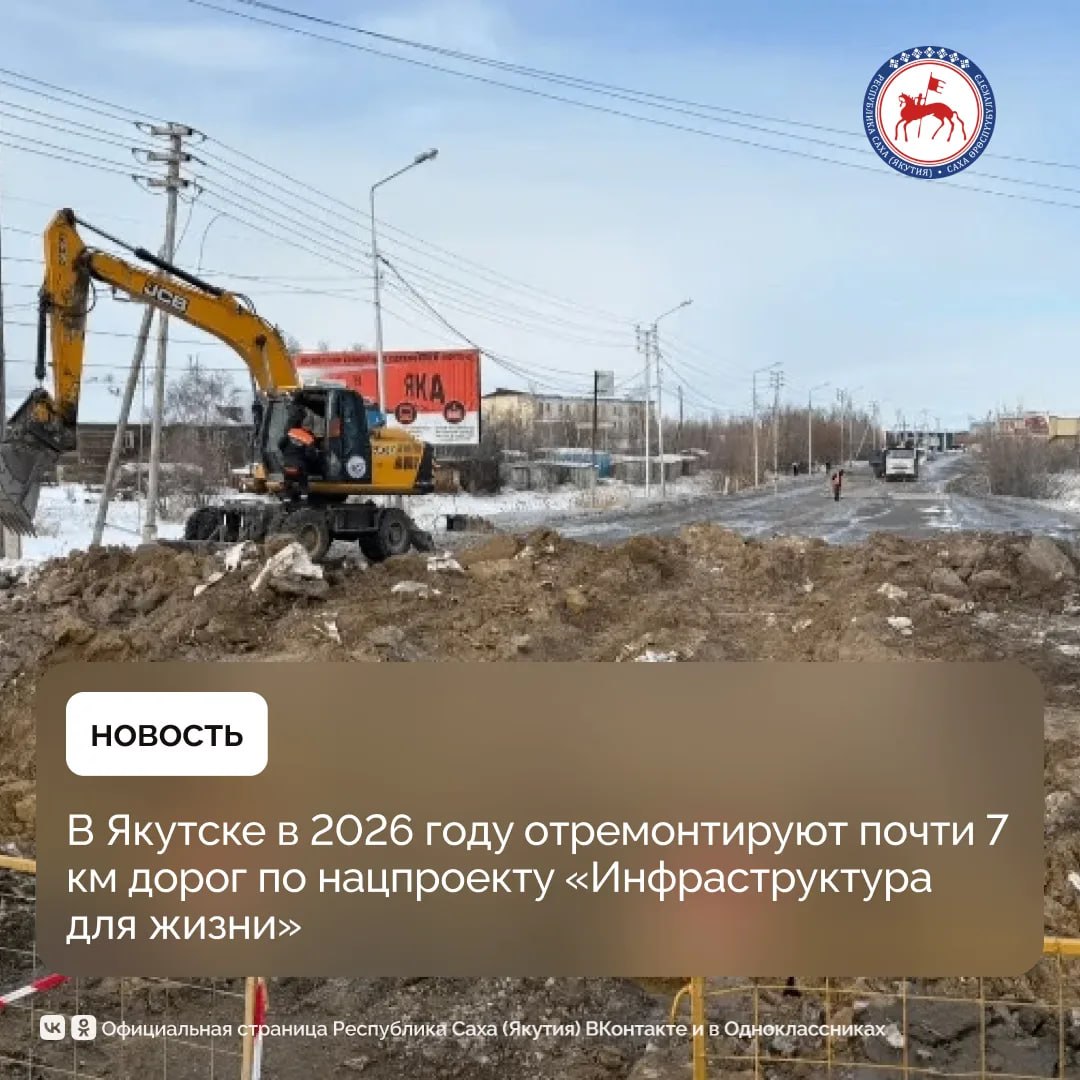 В рамках реализации национального проекта «Инфраструктура для жизни» на 2026 год предусмотрены работы на восьми объектах, общая протяженность которых составит 6,944 километра. Из них 420 м – строительство новых дорог, а более 6,520 км – под капитальный ремонт существующих дорог. Об этом сообщает пресс-служба Окружной администрации Якутска.