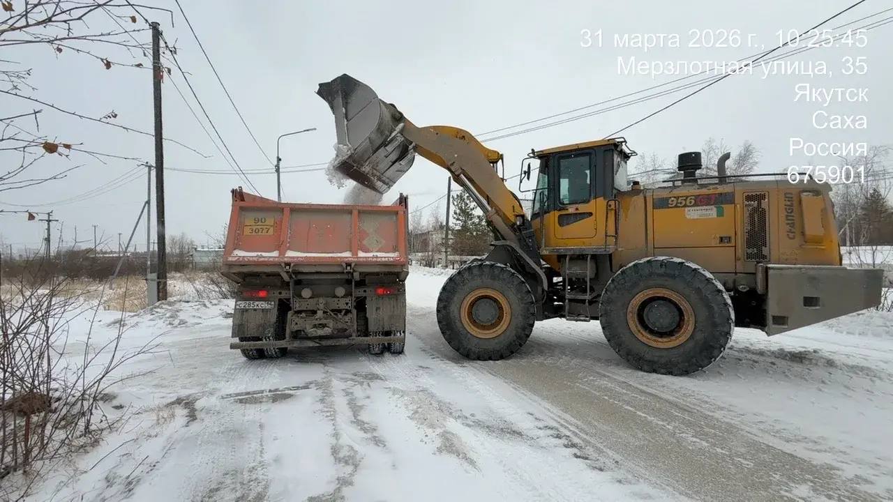 Погрузка снега, ул. Мерзлотная.