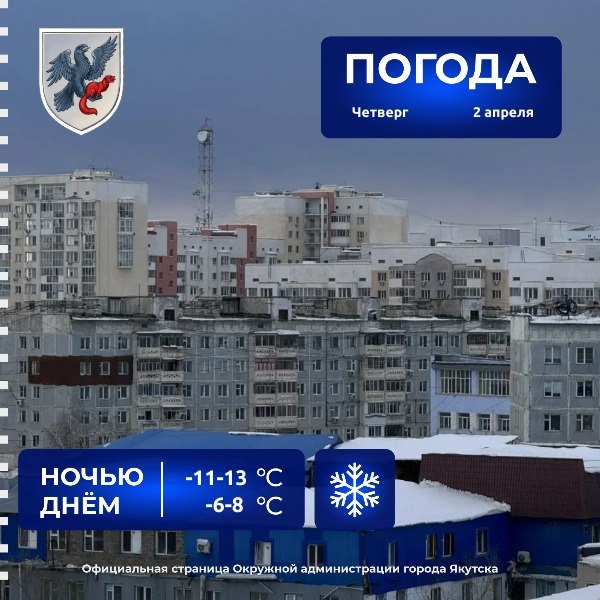 Сегодня в Якутске, по данным Якутского УГМС, умеренный снег, на дорогах гололедица. Ветер северо-западный 2-7 м/с. Температура воздуха -6 -8°С.Подпишись на Вести Саха в MAX | Предложить новость | Подписаться