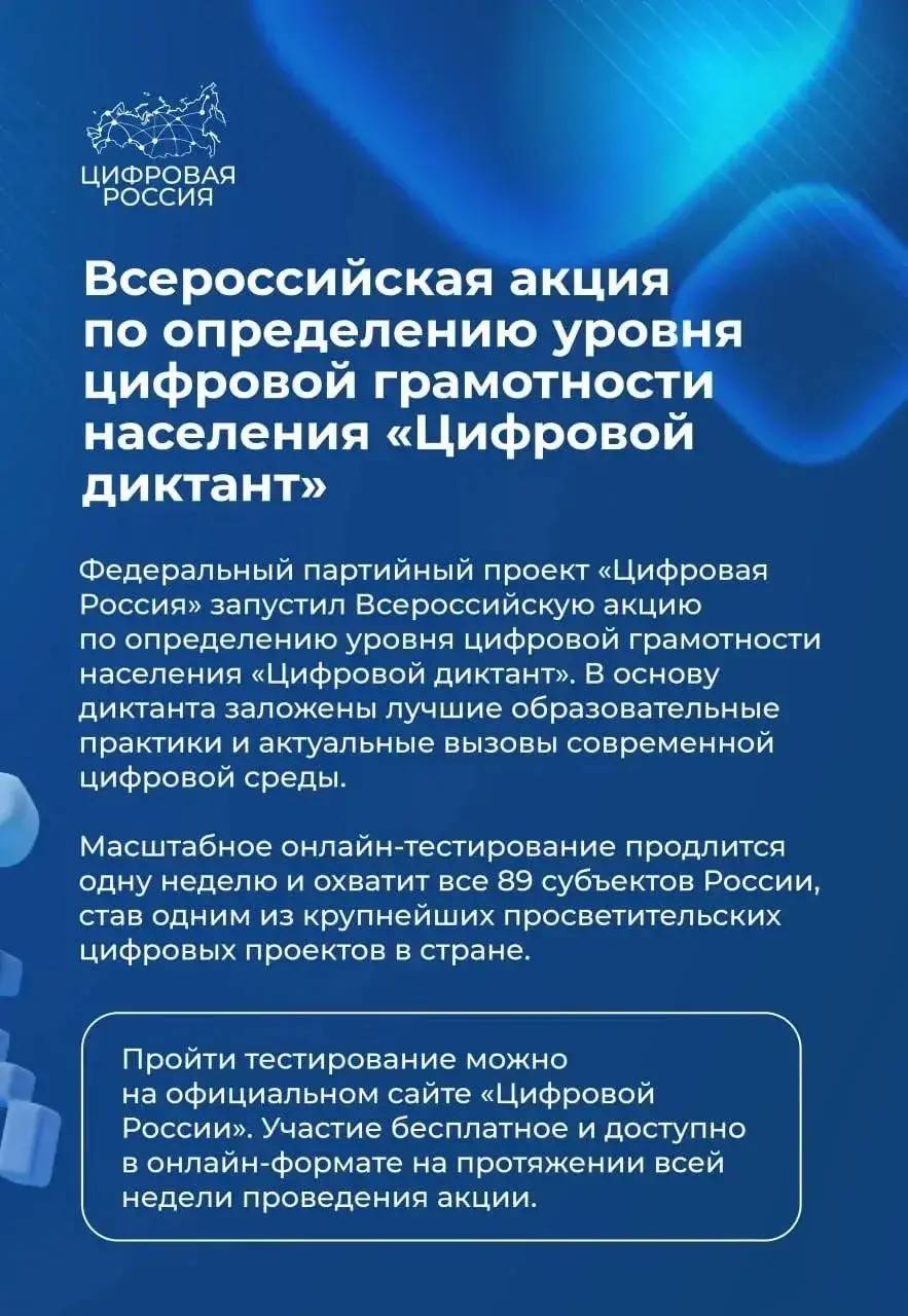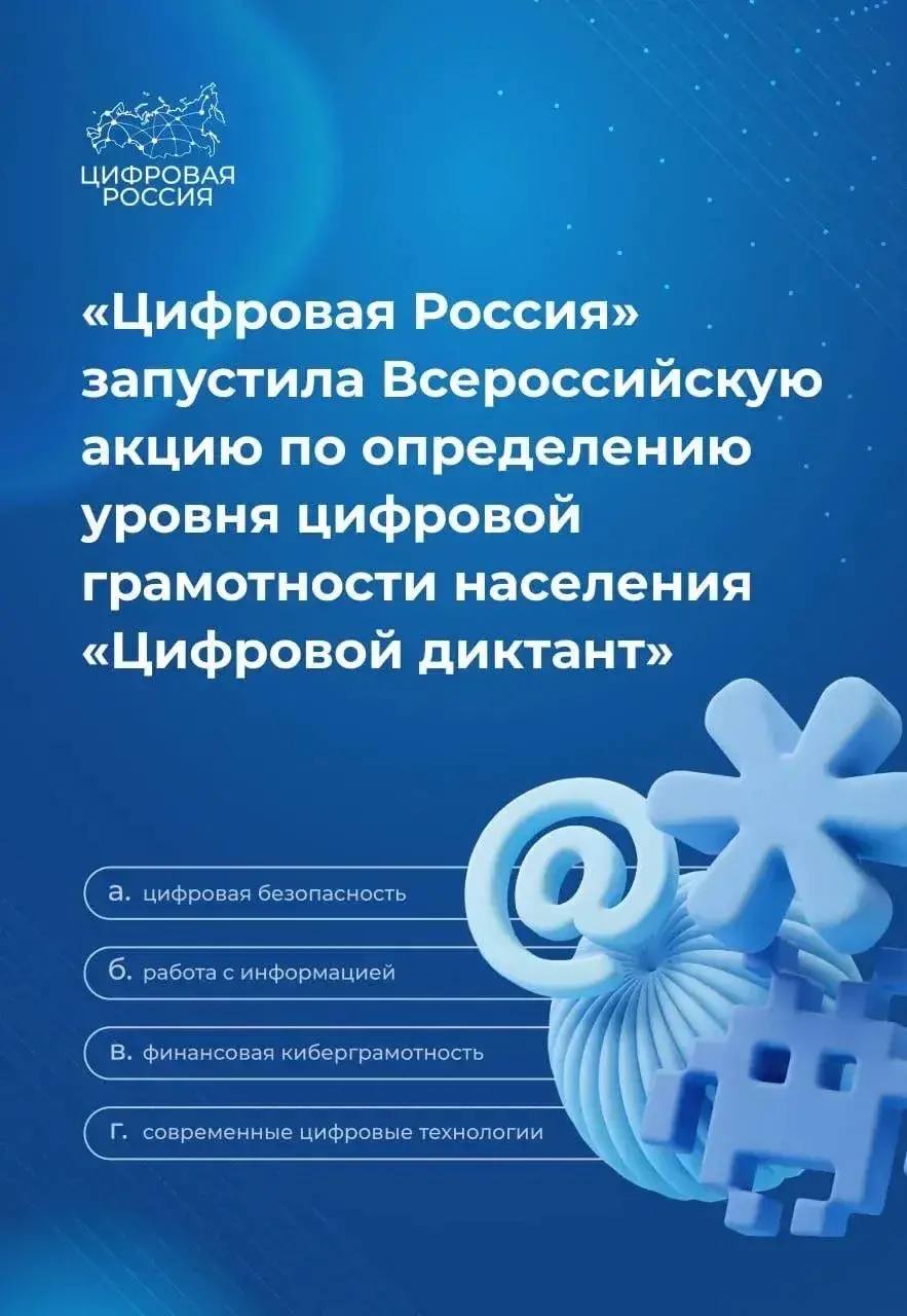 С 7 по 14 апреля в стране проходит Всероссийская акция «Цифровой диктант», направленная на оценку уровня цифровой грамотности населения.