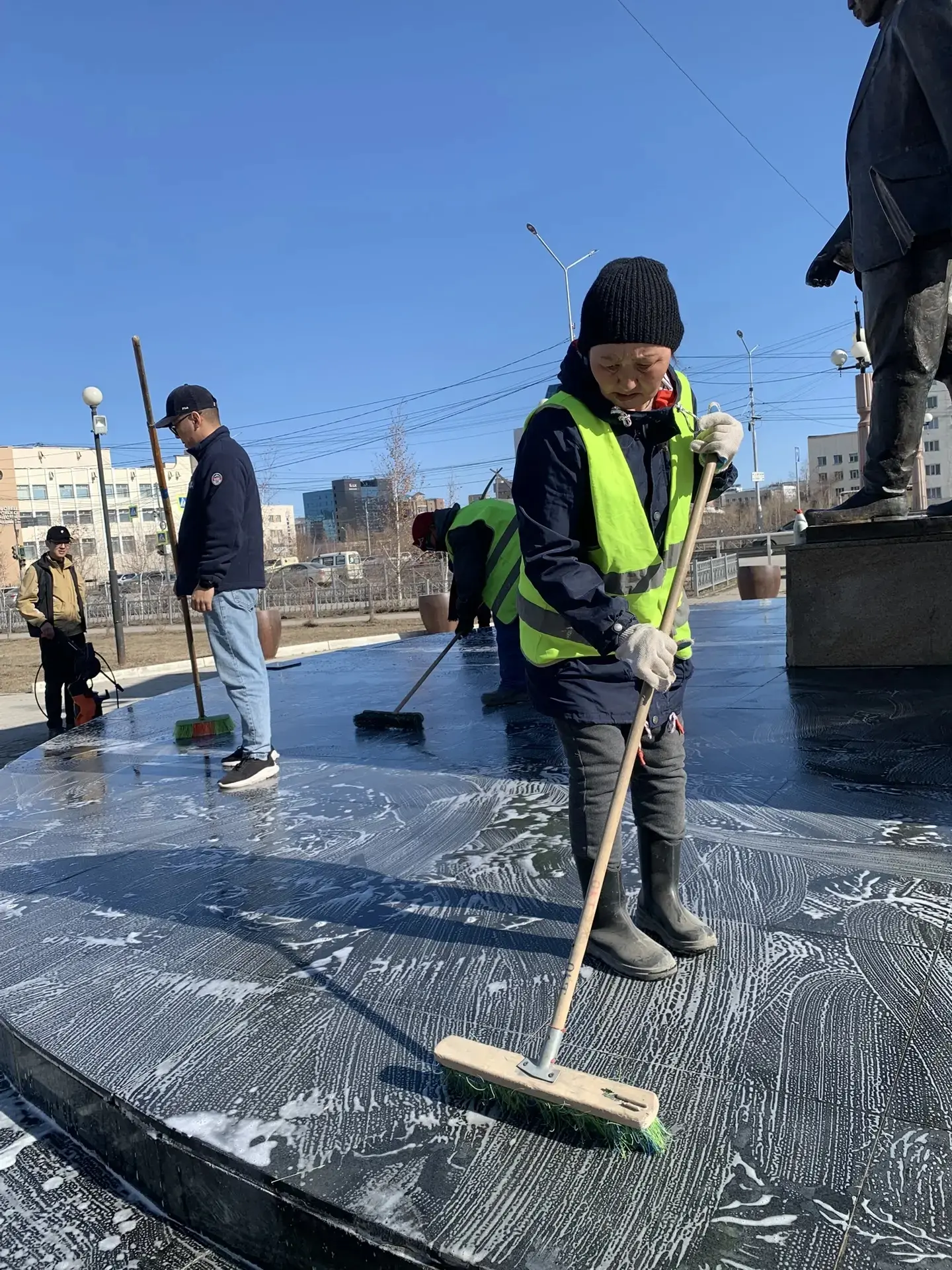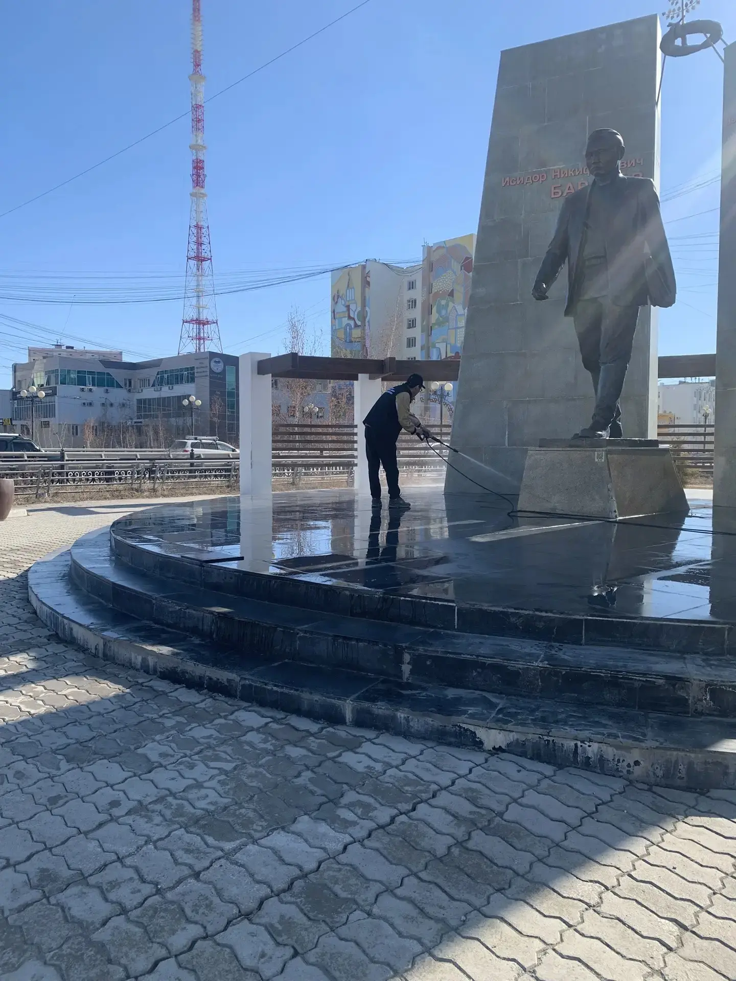 Также, в преддверии Дня Республики, 27 апреля, особое внимание мы уделяем памятникам отцам основателям республики, выдающимся государственным деятелям Якутии. Проводим мытье от зимней пыли, и мелкий текущий ремонт. В ближайшие дни начнем мойку автобусных остановок.