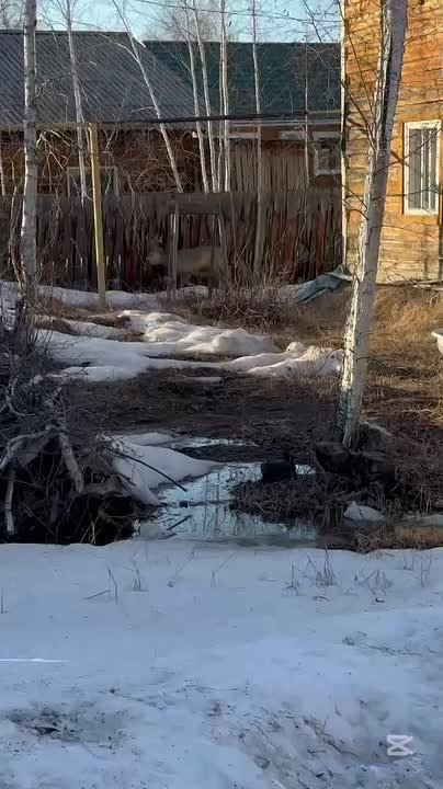 Косуля забрела на территорию частного дома в селе Бердигестях.