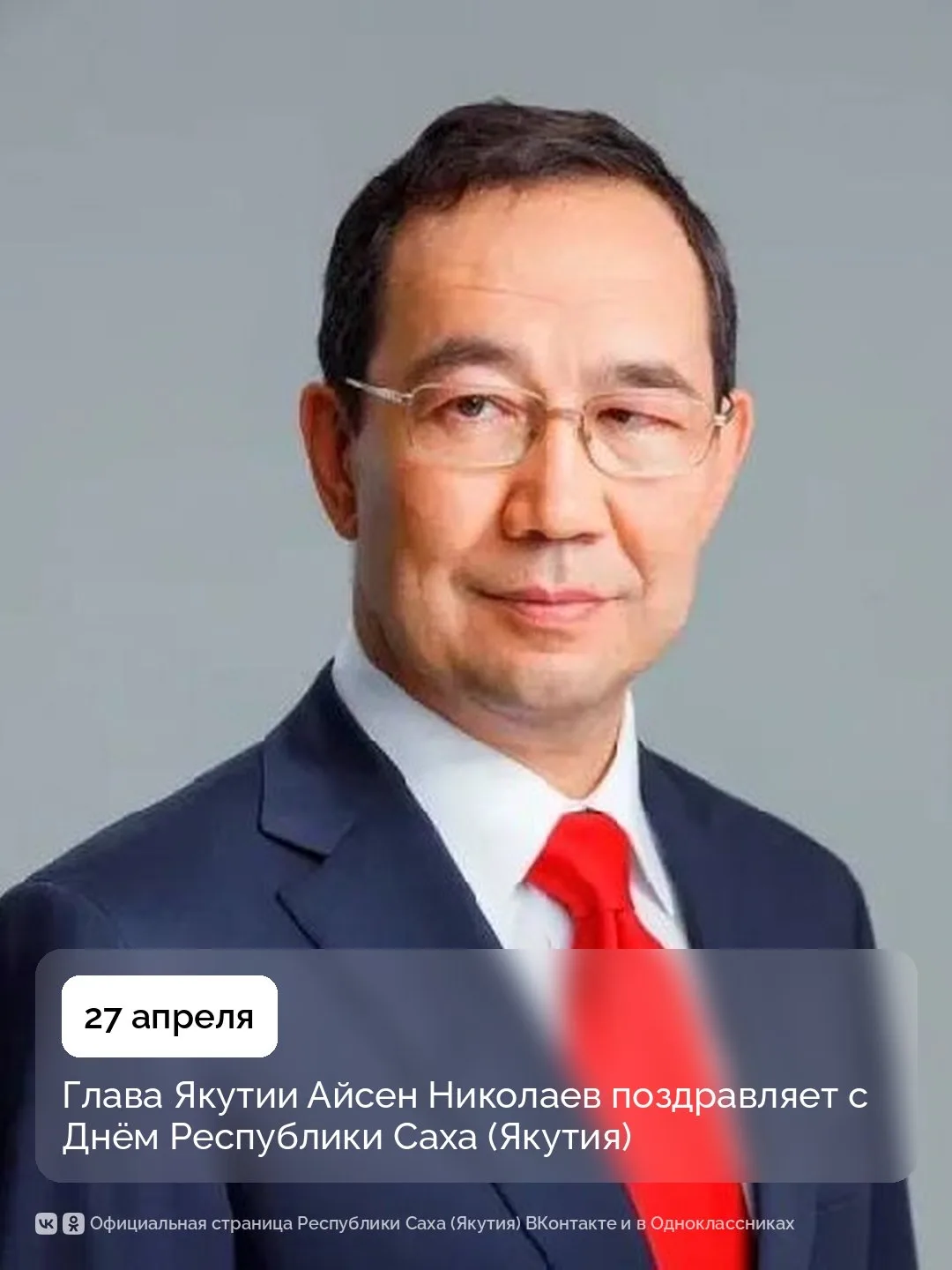Уважаемые якутяне!. От всей души поздравляю вас с Днем Республики! 27 апреля мы отмечаем один из самых значимых праздников