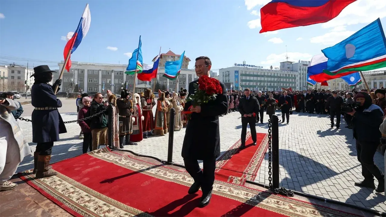 Глава Якутии Айсен Николаев возложил цветы к памятнику Платону Ойунскому