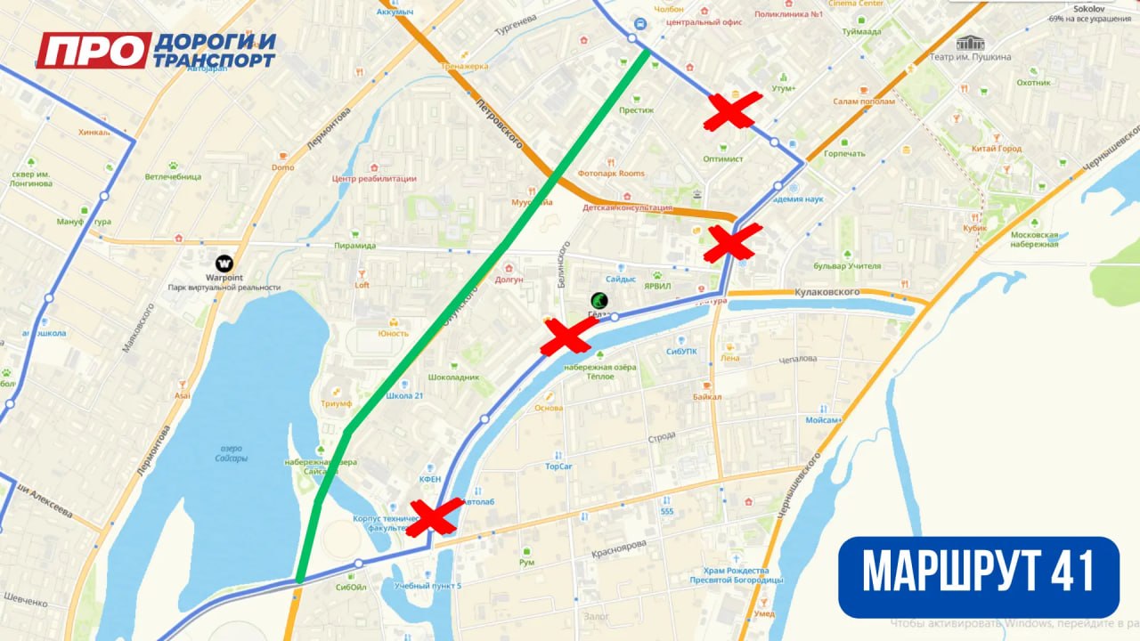 — ул. Дзержинского на участке от ул. Чиряева до проспекта Ленина.