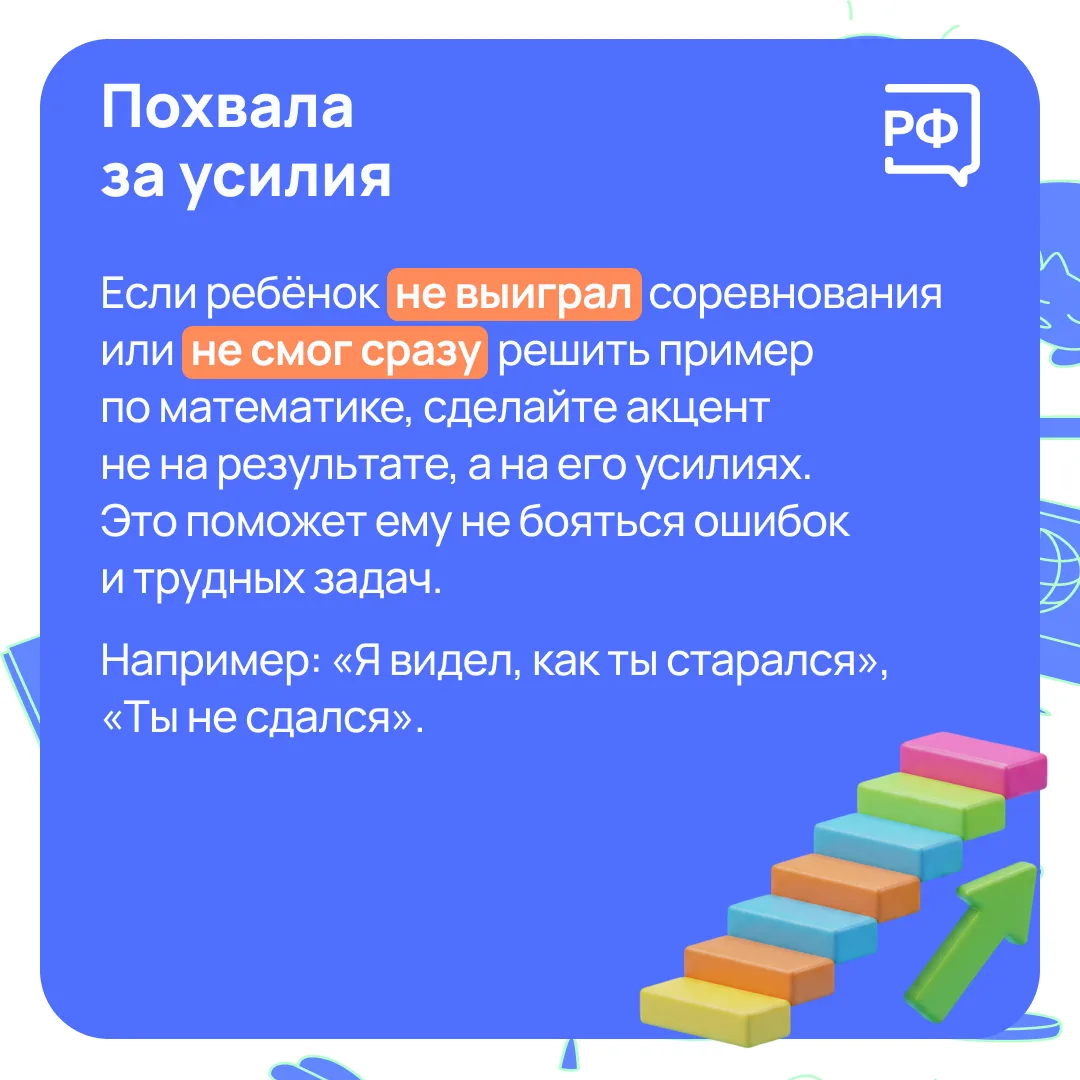 Если родитель хвалит не за идеальный результат, а за старание, он тем самым разрешает ребёнку ошибаться.