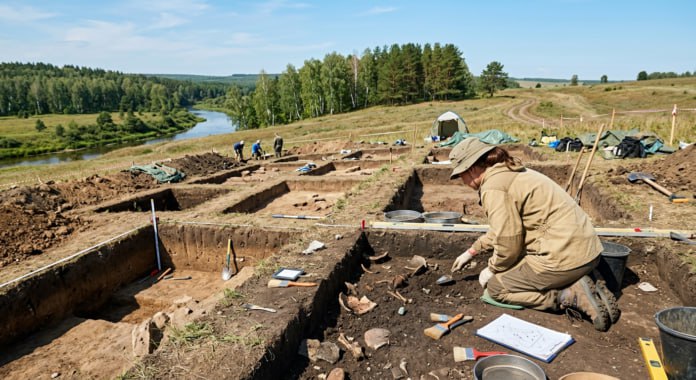 Археологи в Великом Новгороде обнаружили редкое сооружение — древний колодец XII–XIII веков, заполненный фрагментами посуды.