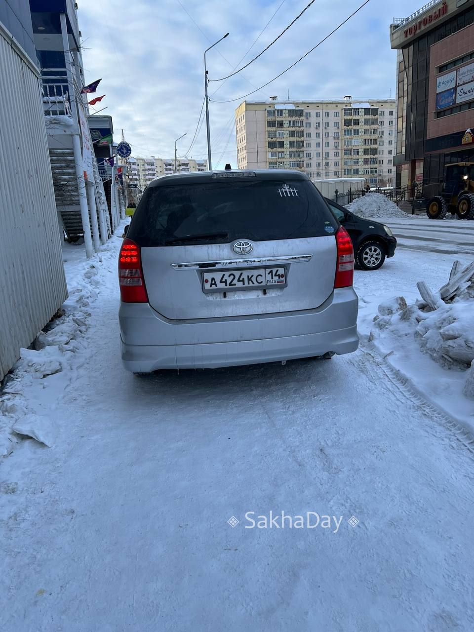 На дорогах гололед, а хозяин этой машины поставил свою машину прямо на пешеходной дороге, его совершенно не интересует, как люди будут проходить, главное ему удобно