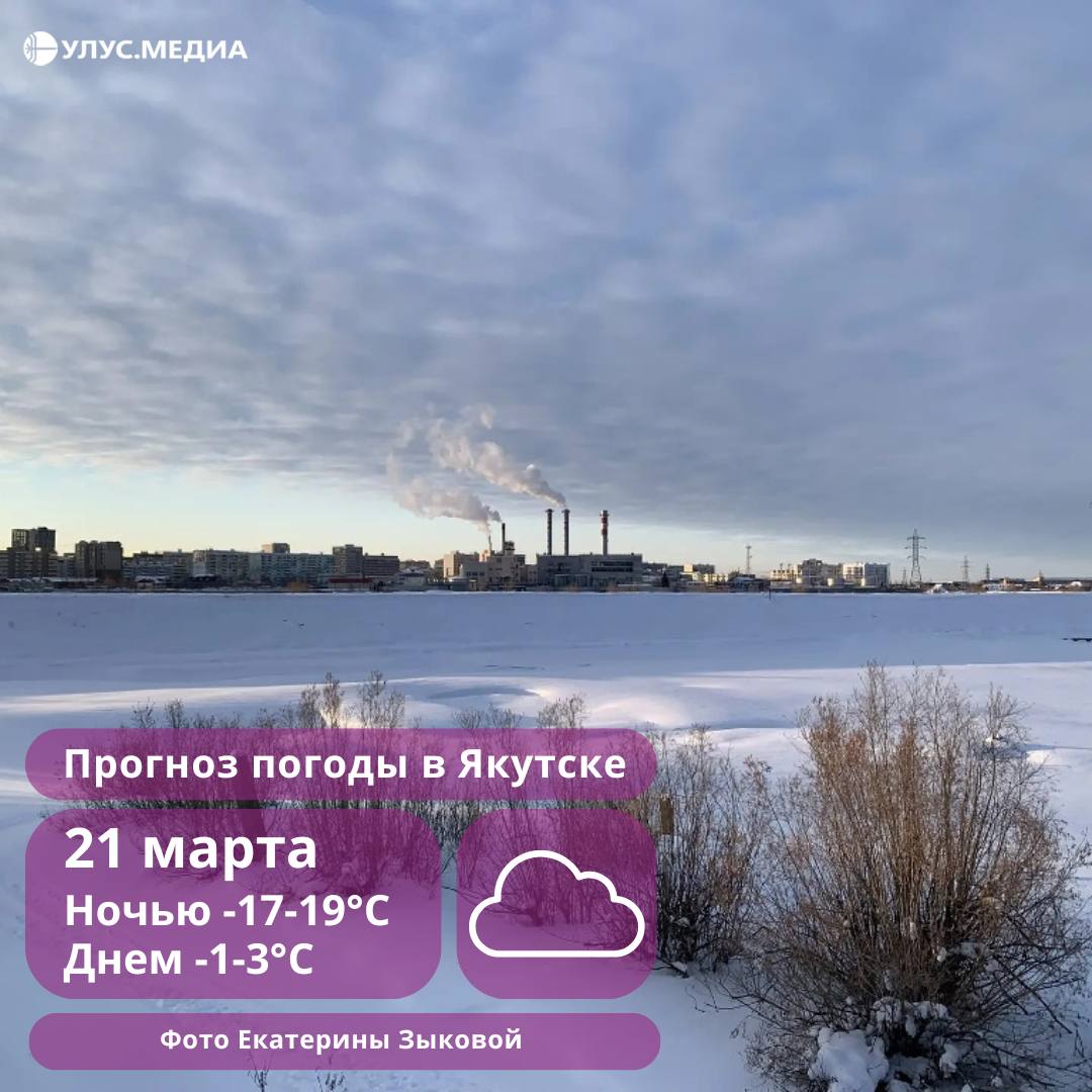 В Якутске ночью температура составит -17-19°, днем — -1-3°. Утром возможен небольшой снег, ветер переменный 2–5 м/с.