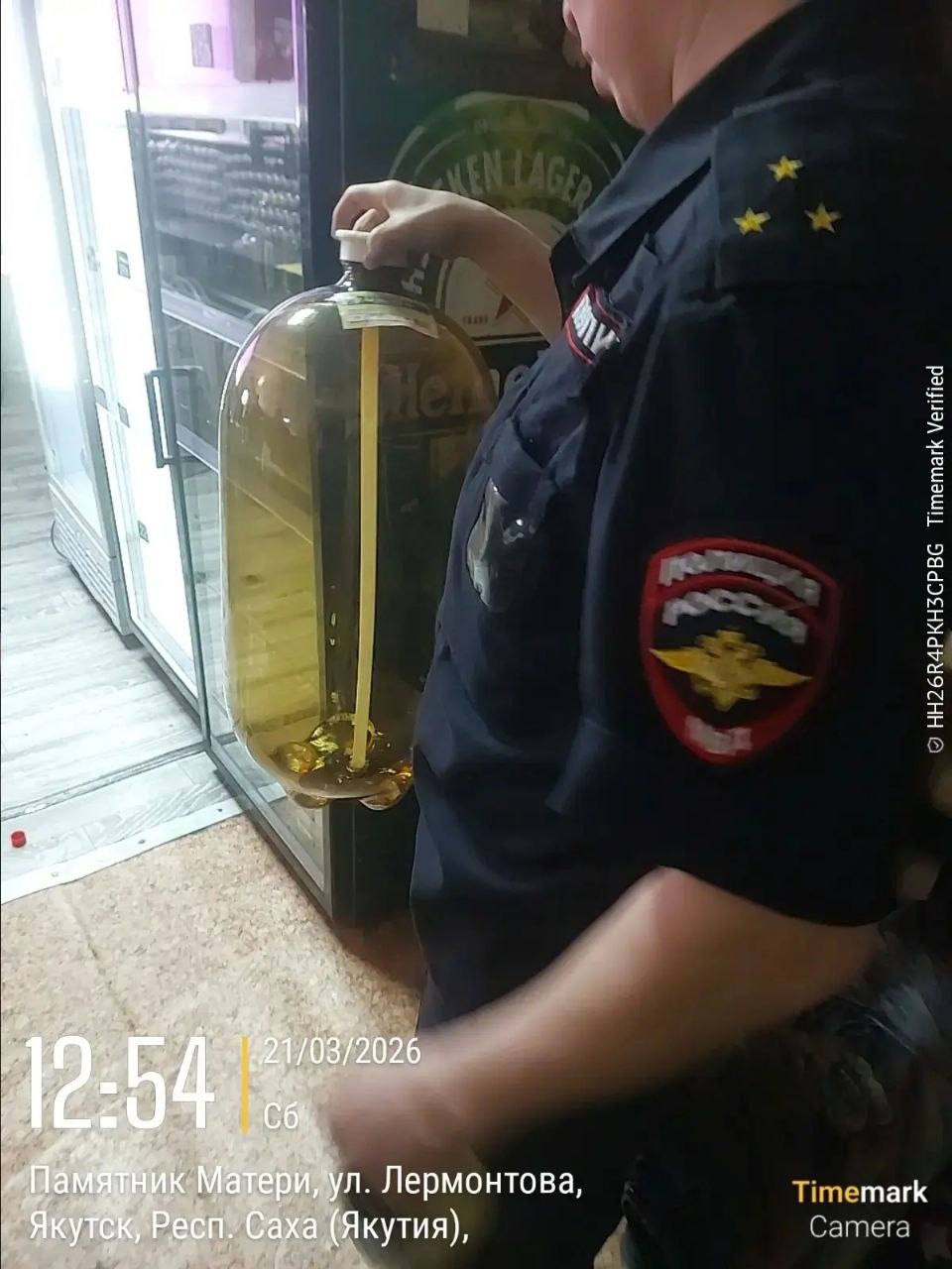 В ходе проверки в одном из заведений на пересечении улиц Шевченко и Лермонтова обнаружили продукцию на вынос в закрытой таре. Изъято около 150 литров, по факту нарушения составлен протокол об административном правонарушении.