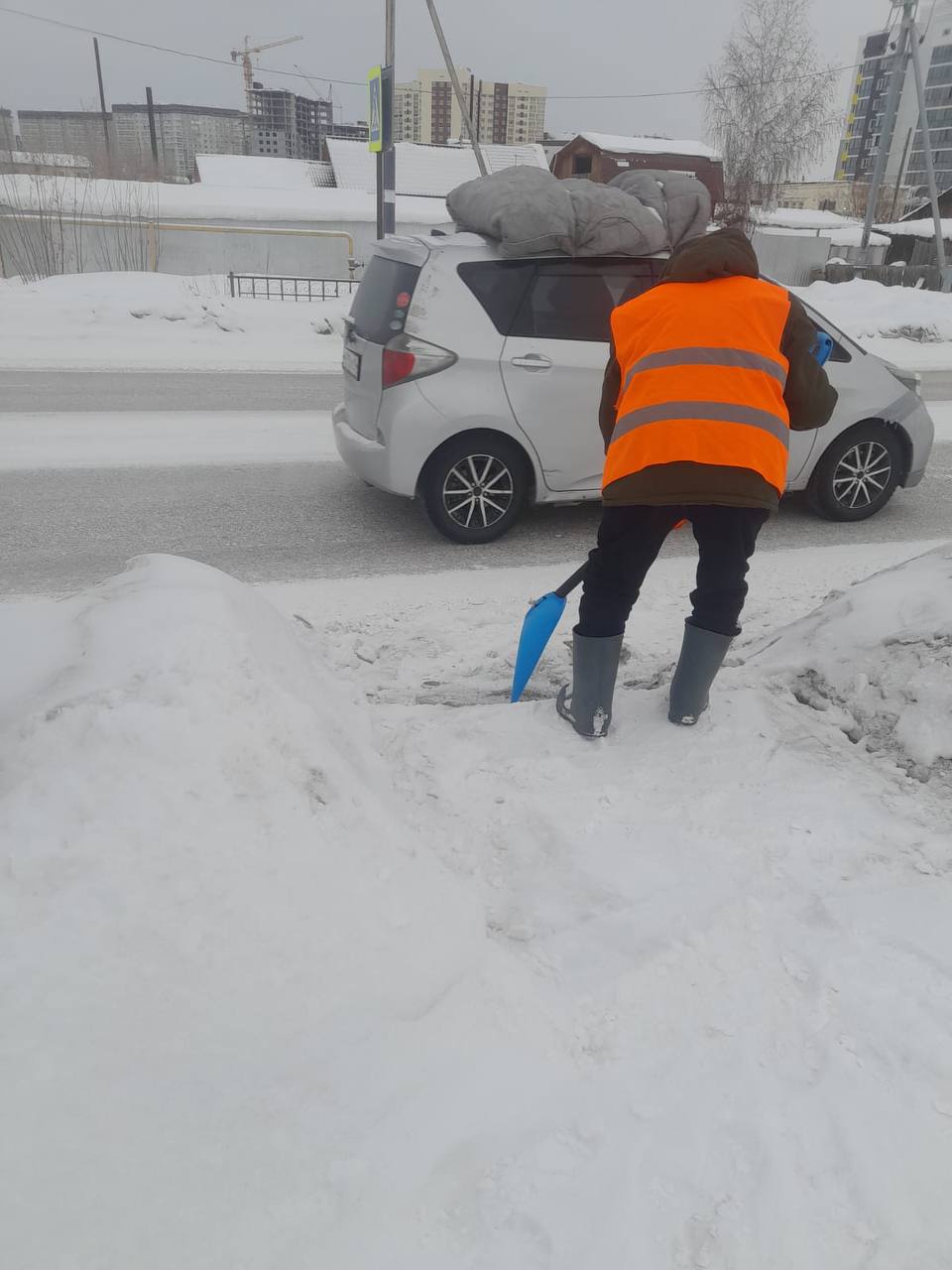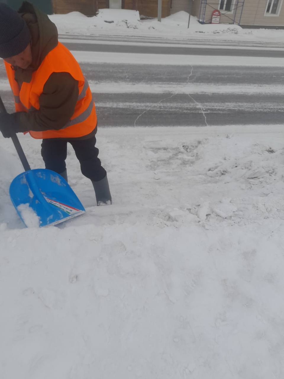 Ежедневная работа муниципальных дворников по уборке снега на территории Автодорожного округа.