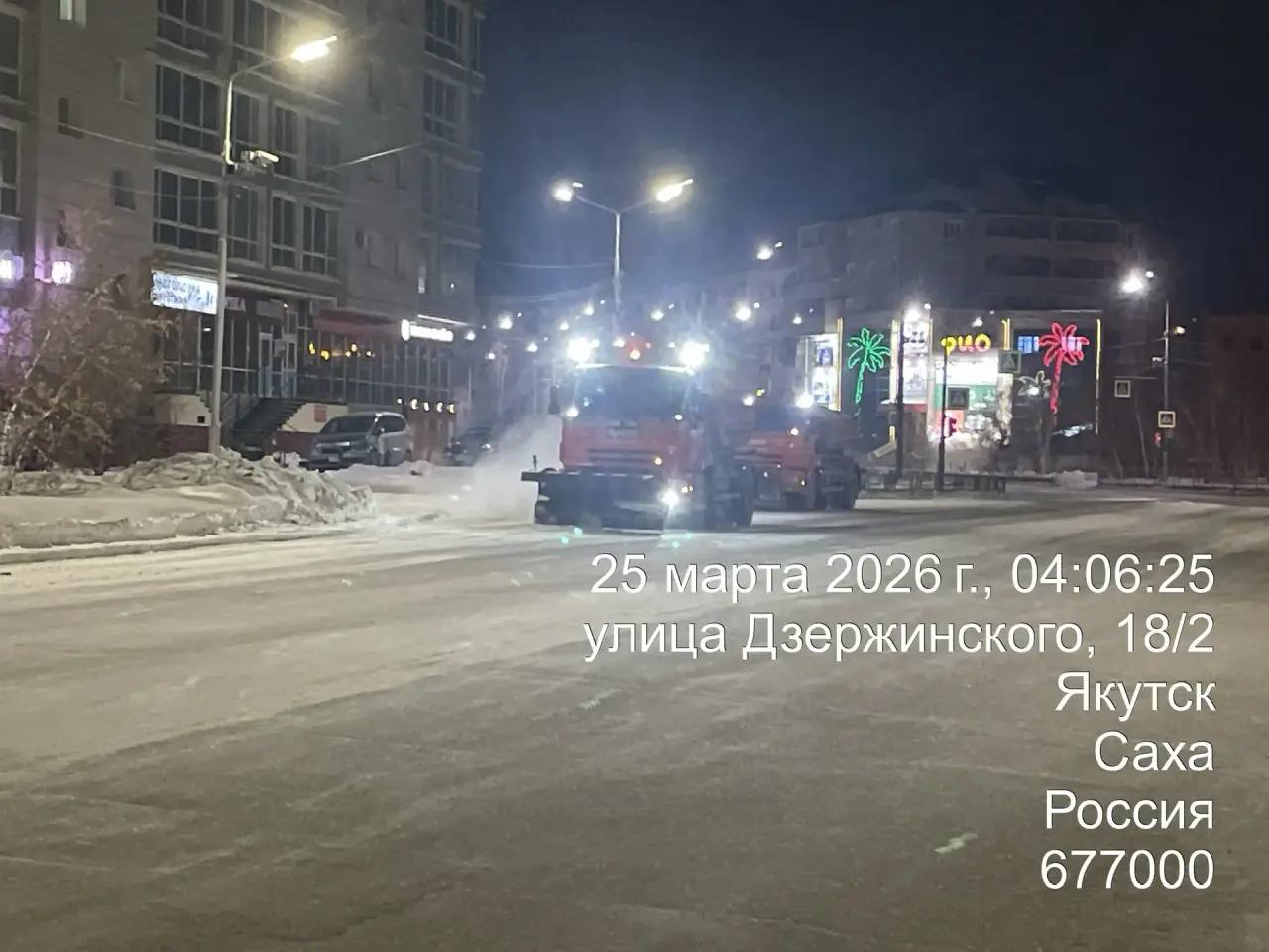 Кадры ночных работ по уборке снега.