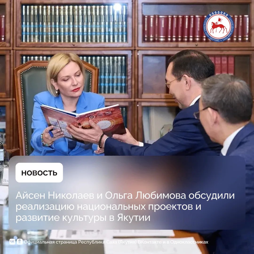 24 марта, накануне Дня работников культуры, в Москве состоялась рабочая встреча Главы Республики Саха (Якутия) Айсена Николаева с министром культуры Российской Федерации Ольгой Любимовой.