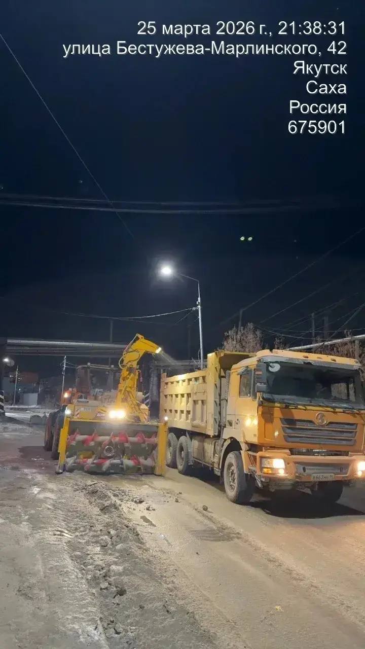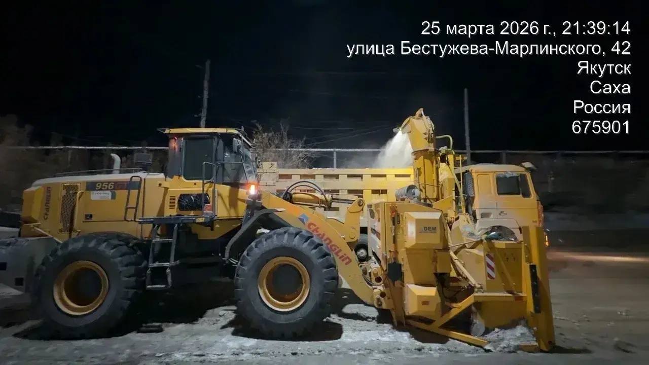 · г. Якутск, ул. Кузьмина, д. 34/2.· г. Якутск, ул. Кузьмина, д. 26/3.· г. Якутск, ул. Кузьмина, д. 28/3 Работы проводятся в рамках усиления санитарной очистки города, сегодня 25.03.2026г., вывезено 240м3 снега.Работы по вывозу...