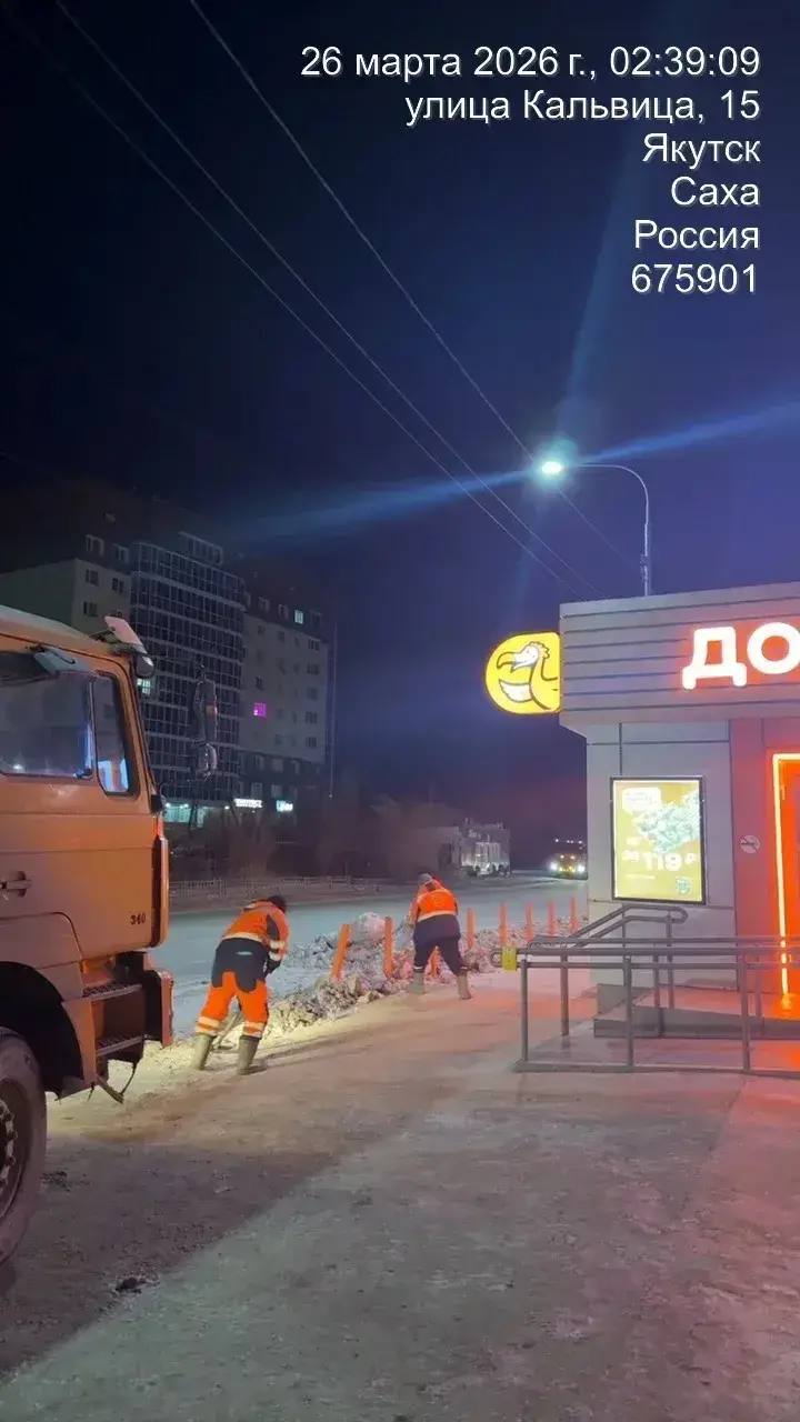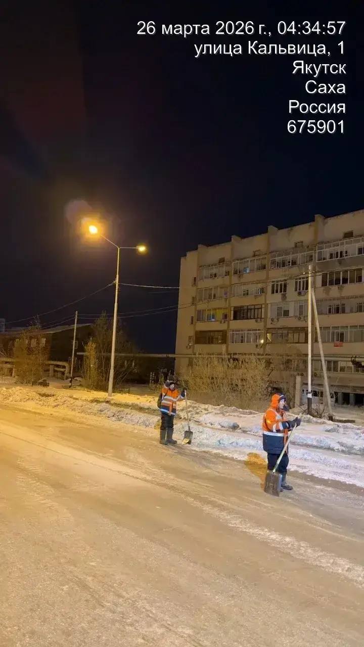 · г. Якутск, ул. Кузьмина, д. 34/2.· г. Якутск, ул. Кузьмина, д. 26/3.· г. Якутск, ул. Кузьмина, д. 28/3 Работы проводятся в рамках усиления санитарной очистки города, сегодня 25.03.2026г., вывезено 240м3 снега.Работы по вывозу...