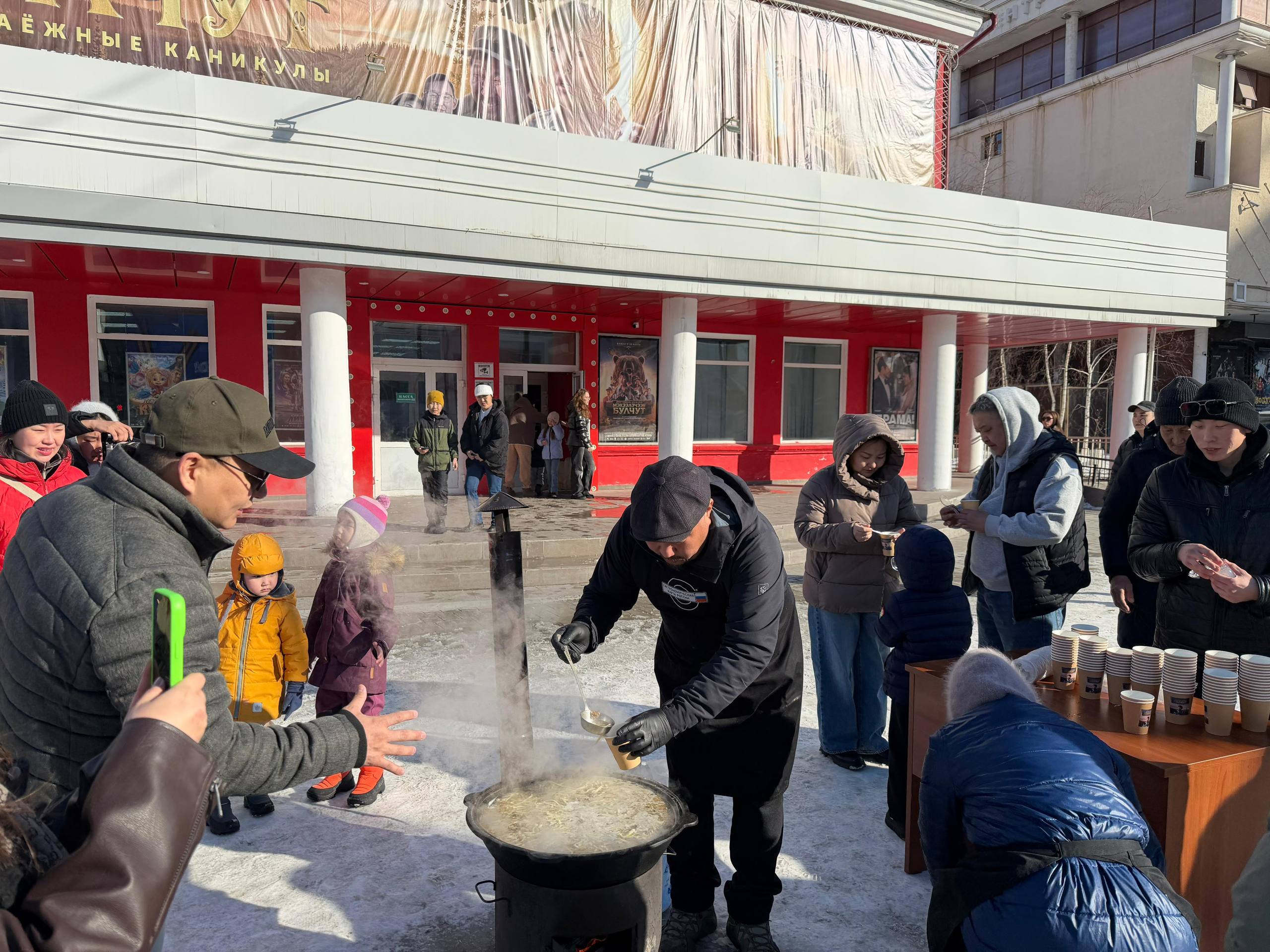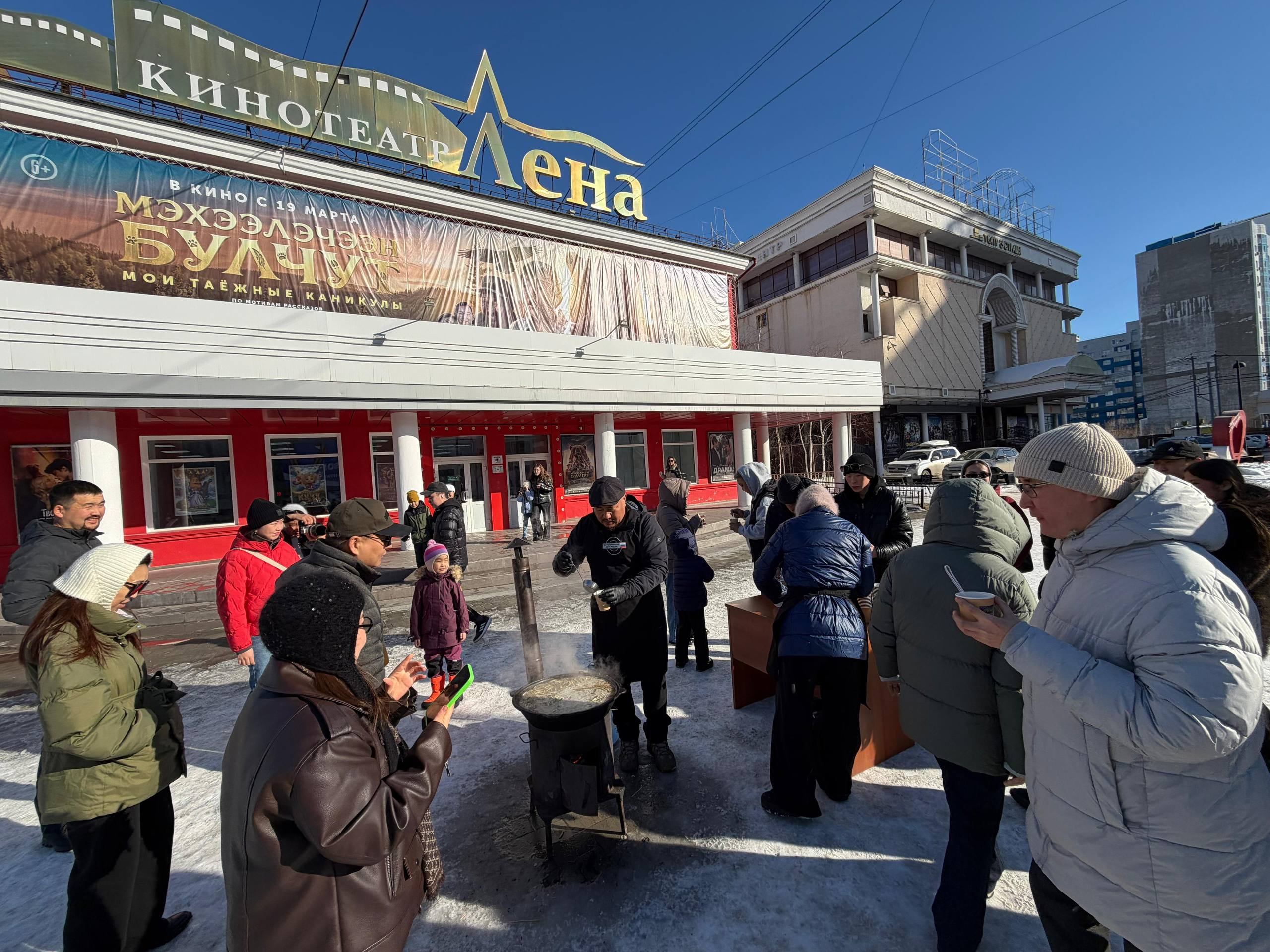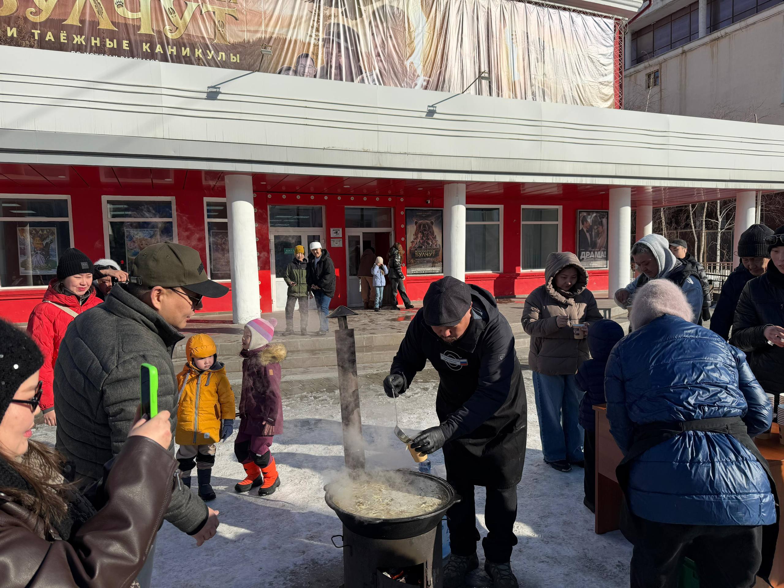 Бренд-шеф Николай Атласов в центре Якутска приготовил таёжный суп в честь выхода фильма «Мэхээлэчээн булчут»!