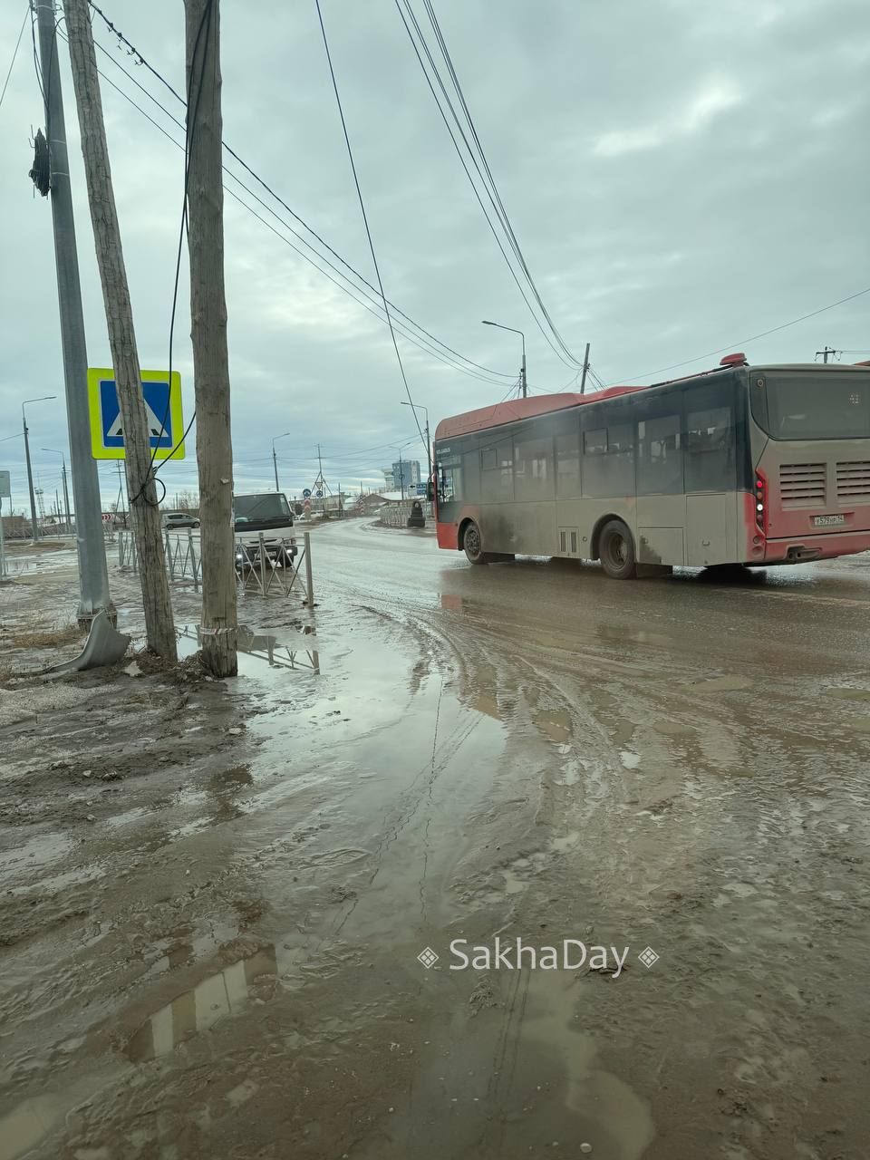 Вчера автобус зацепился за низко висящий электрический провод, проехав метра 3 увидел сдал и назад возле поста ГАИ в Мархе