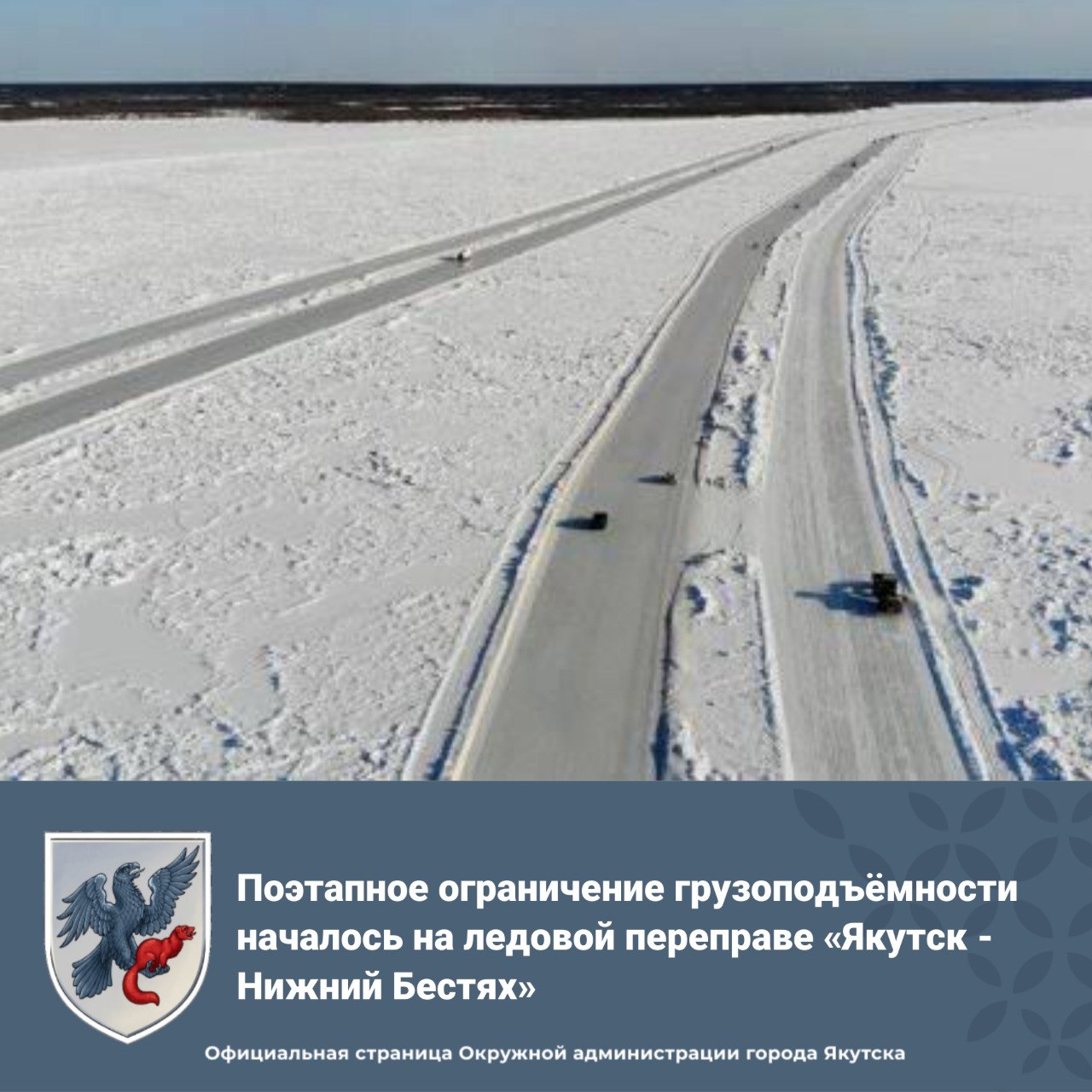 Поэтапное ограничение грузоподъёмности началось на ледовой переправе «Якутск - Нижний Бестях»