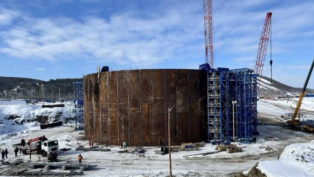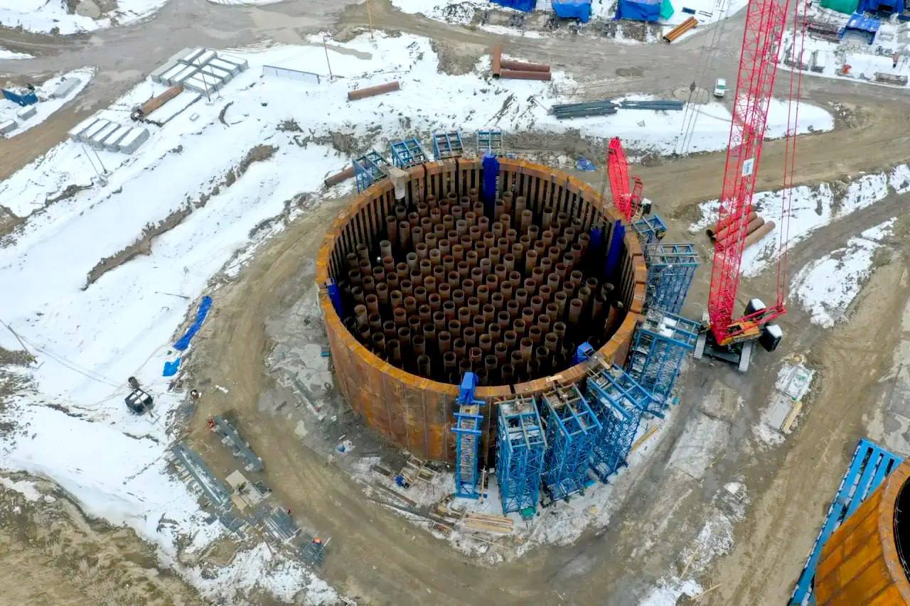 На стройке Ленского моста в Якутии собрали второй коффердам