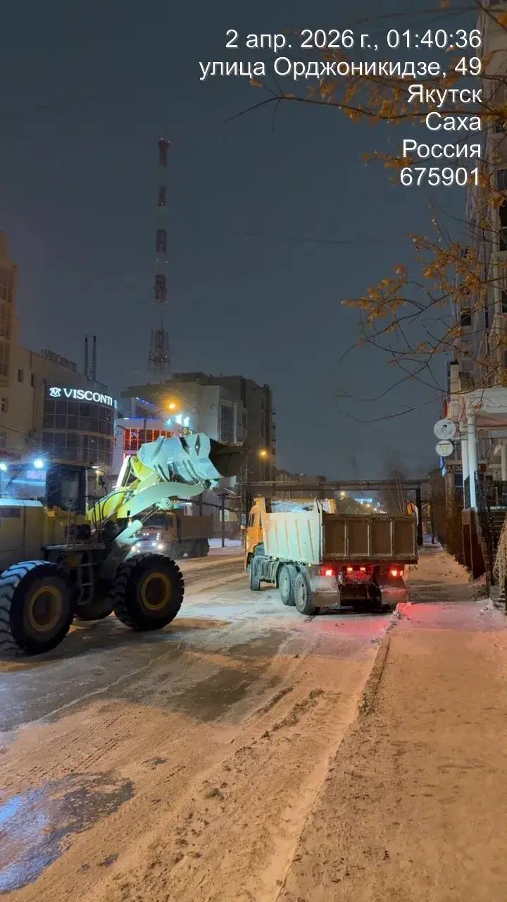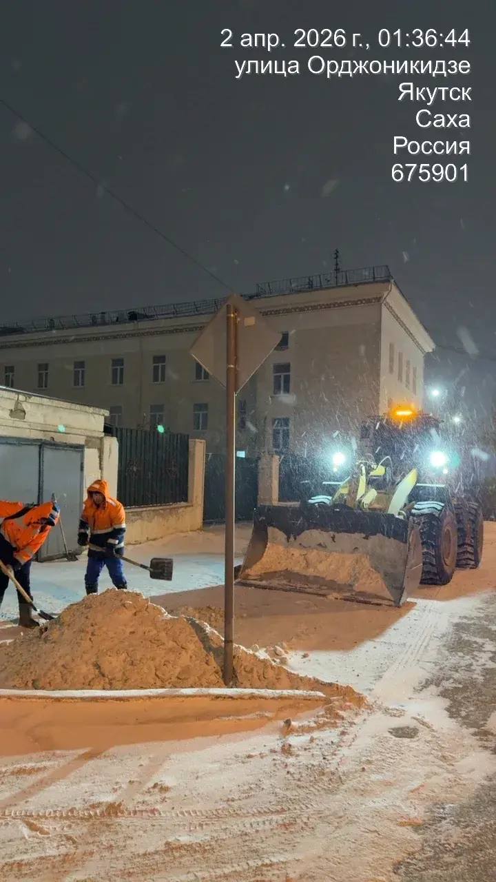 Ночные работы по уборке снега, ул. Орджоникидзе.