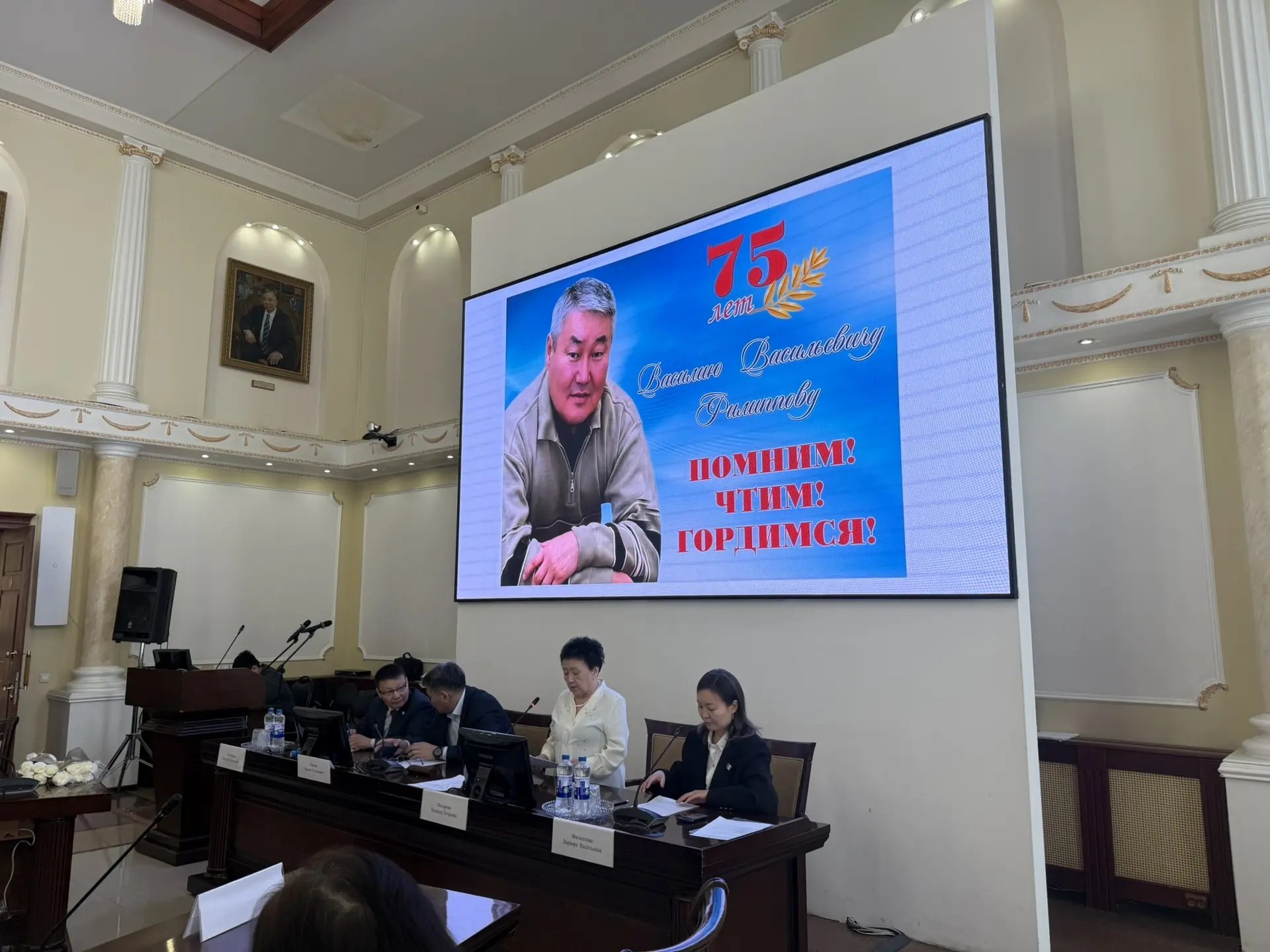 В зале учёного совета Северо-Восточного федерального университета имени М.К. Аммосова 1 апреля прошел день памяти доктора технических наук, академика Академии наук Якутии, члена-корреспондента Российской академии наук, ректора Якутского государственного университета, председателя Палаты Республики Государственного Собрания, почётного гражданина Горного улуса Василия Васильевича Филиппова. Мероприятие было приурочено к 75-летию со дня его рождения. Название дня памяти — «Динамика жизни» — выбрано не случайно: вся деятельность Филиппова была стремительным, созидательным движением вперёд.