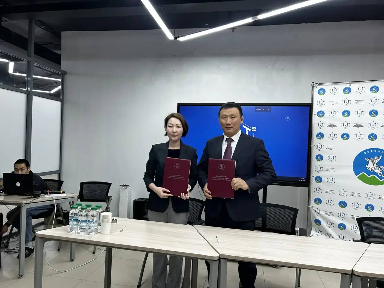 Хорутуулаах кэпсэтиии тмгнэн, улуус баылыга Дмитрий Тихонов уонна техникум-интэринээт дириэктэрэ Марина Сивцева ситимнээх лэни ыытыы сблэин тэристилэр.
