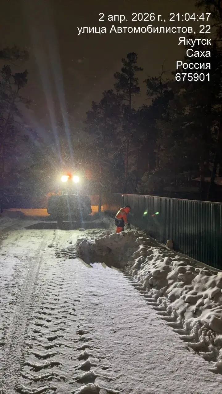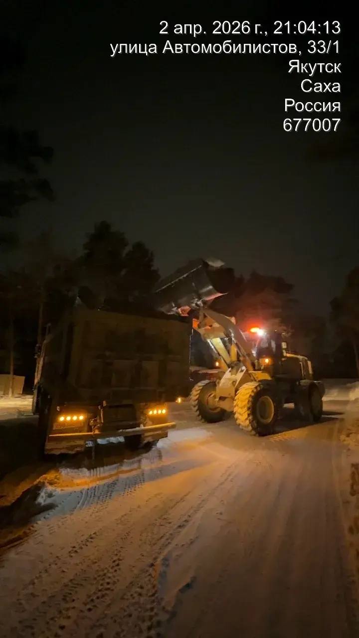 Ночные работы по погрузке снега, ул. Автомобилистов.