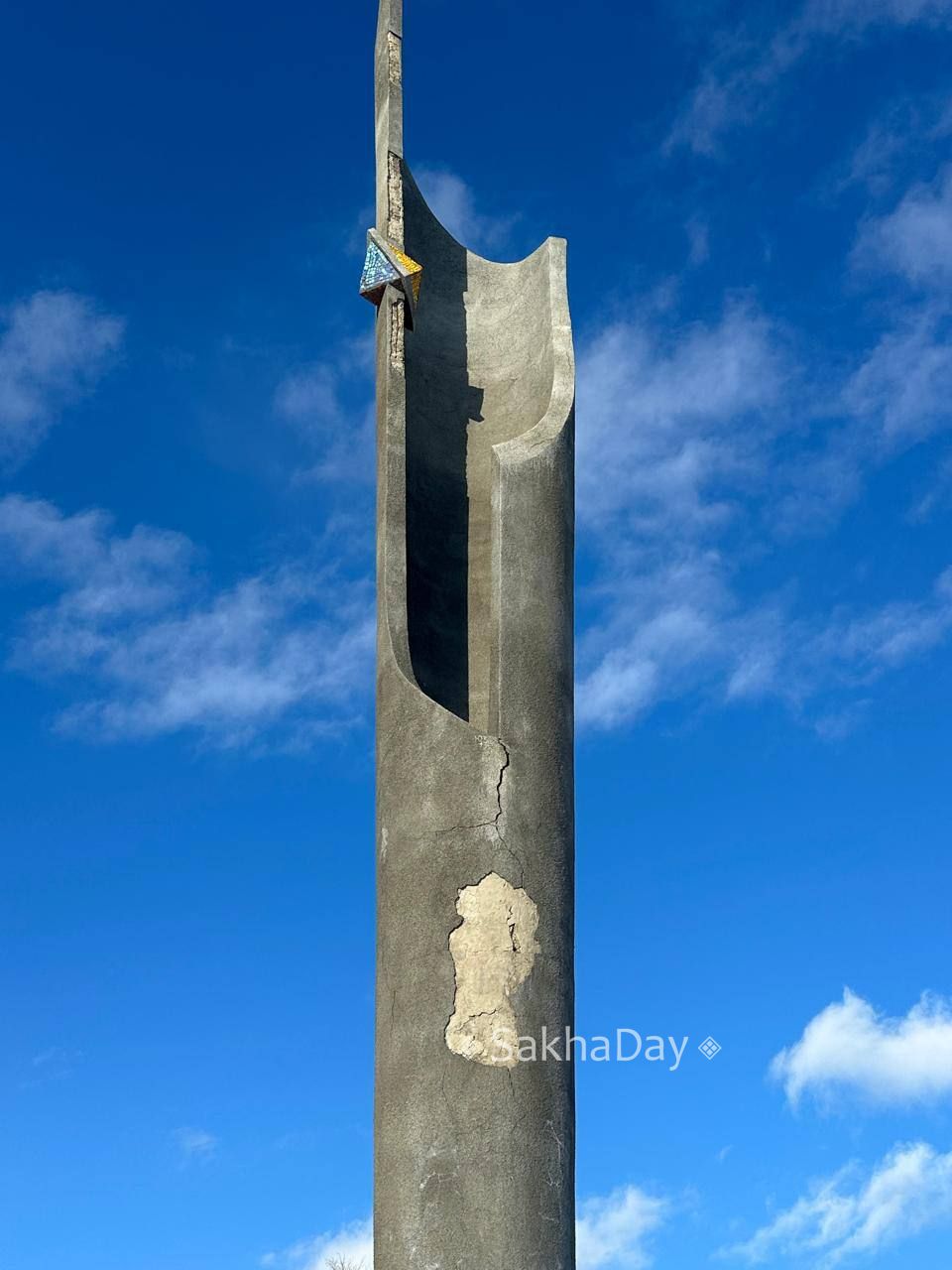 Знаменитый монумент в честь первооткрывателей алмазов в Мирном находится в аварийном состоянии. В августе 2023 года с обелиска отвалился кусок облицовки. К счастью, никто не пострадал. С тех пор мэрия ищет строительную компанию для ремонта, но пока не может найти.