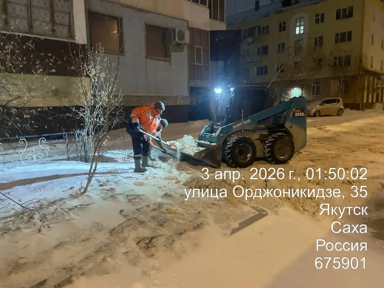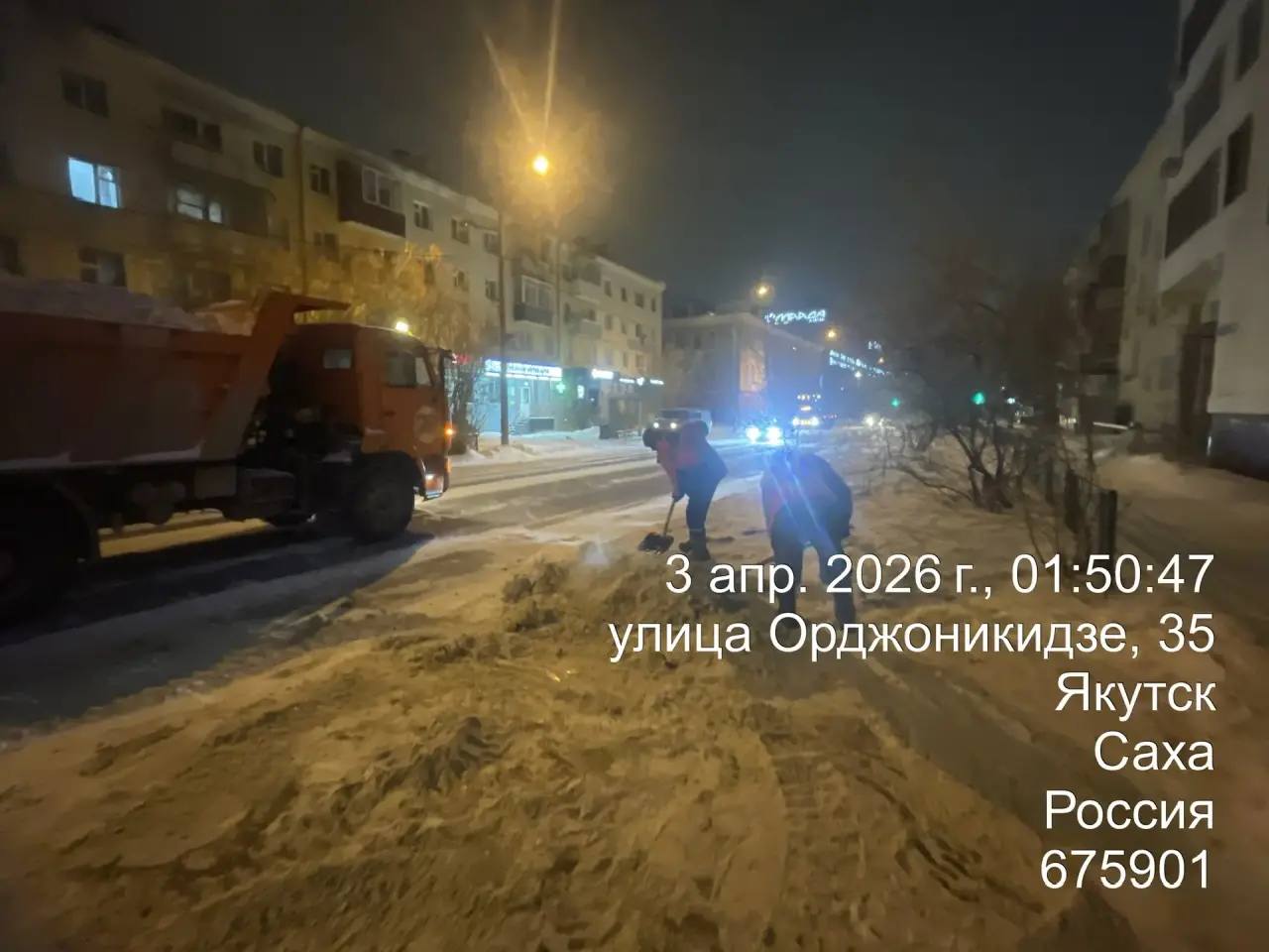 Ночные работы по уборке снега, ул. Орджоникидзе.