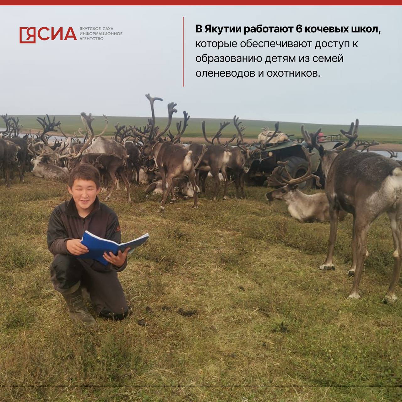 В Оленекском районе Якутии уже 35 лет работает кочевая школа «Куонэлэкээн». Как правило, здесь преподает только один учитель. Он выезжает вместе с семьями-оленеводами в стада. Дети учатся с 1-го по 7-й класс, при этом у каждого своя программа.