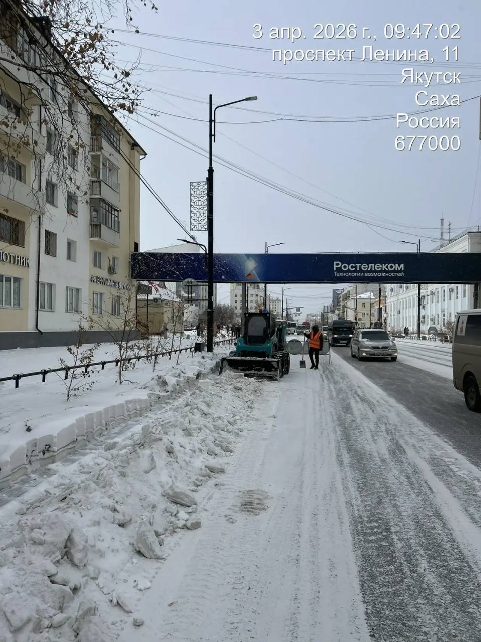 Работы по уборке снега, пр. Ленина.