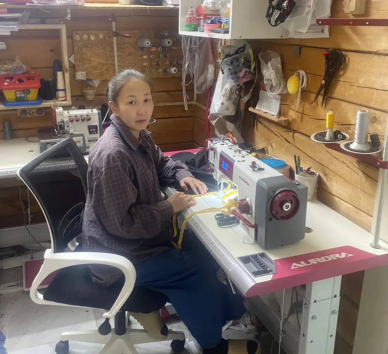 Многодетная мама, жительница с. Ой Нина Егорова на средства социального контракта открыла ателье «Ай Санаа» по пошиву одежды.