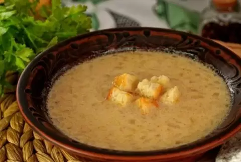 Чешский пивной суп подают горячим, дополняя его хрустящими сухариками — это настоящая находка для любителей необычных блюд и пивных традиций!