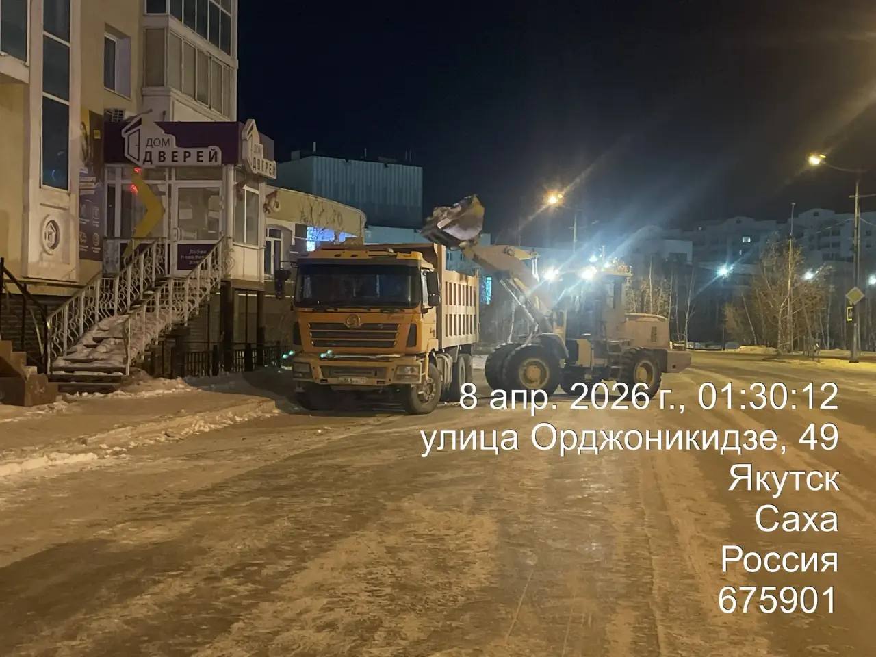 Подготовка к вывозу снега, ул. Орджоникидзе.