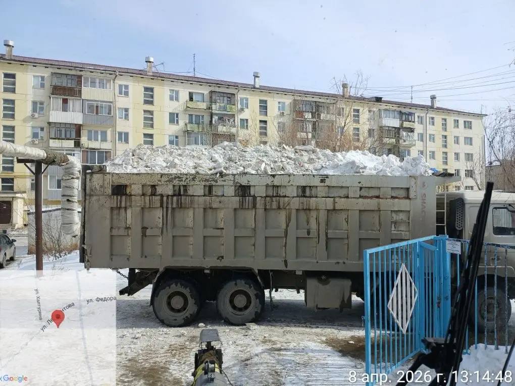На территории Строительного округа подрядной организацией продолжаются работы по вывозу снега.