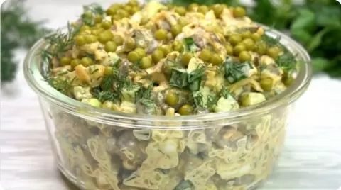 - Консервированный зеленый горошек — 1 банка (около 400 г).