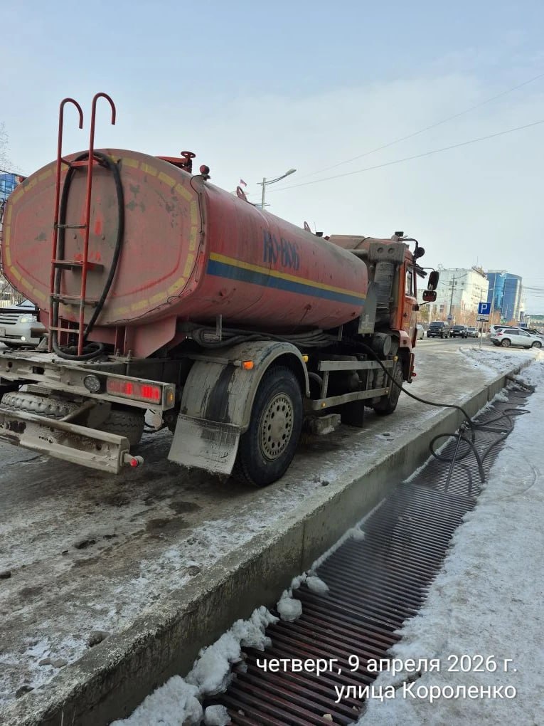 По состоянию на 8 апреля 2026 года в Якутске за день было откачано свыше 1000 кубометров талых вод. Для выполнения этой задачи задействованы 11 ассенизаторских машин МУП «Жилкомсервис».В вечернее время 8 апреля была проведена откачка талой воды с улиц...