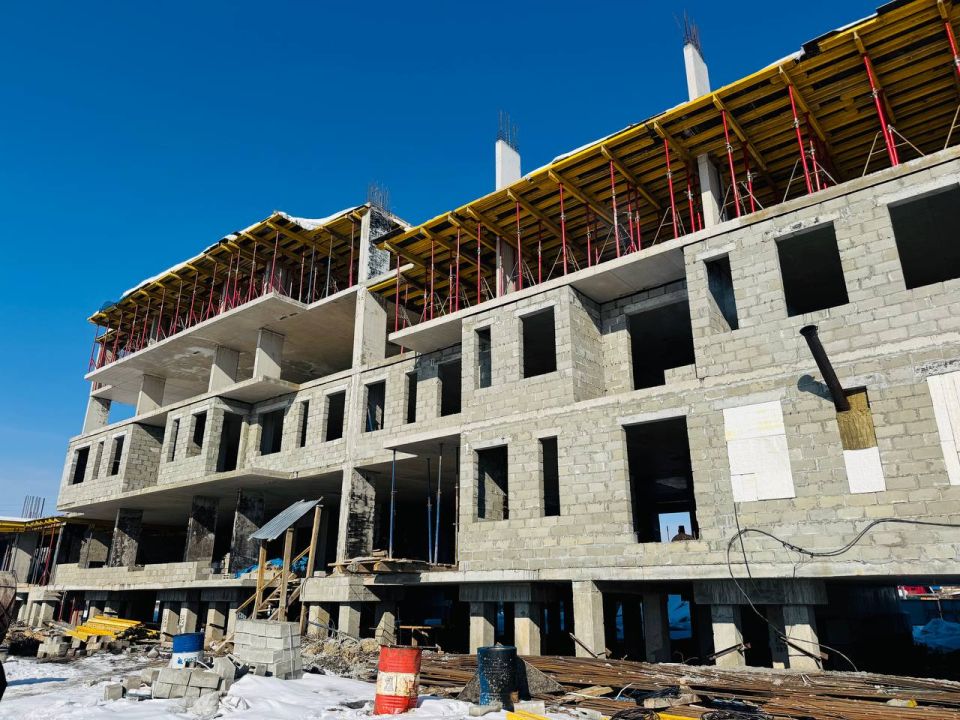 Дом на Молодежной (103 квартиры) — 24,6% готовности. Работы идут малыми силами (7 кладочников + инженер), но объект не брошен. Садовников подчеркнул: программа переселения — обязательства перед семьями. Ни один дом не останется недостроенным, ситуация под контролем.