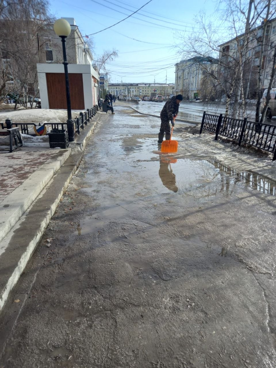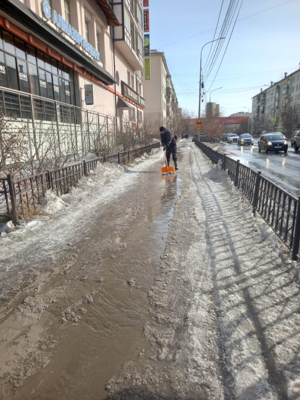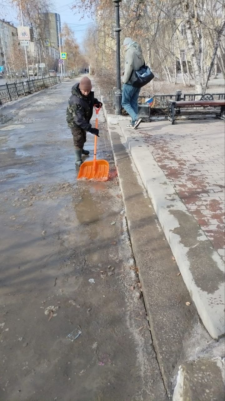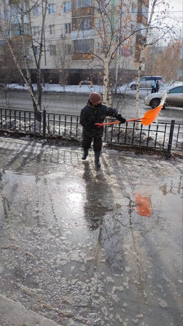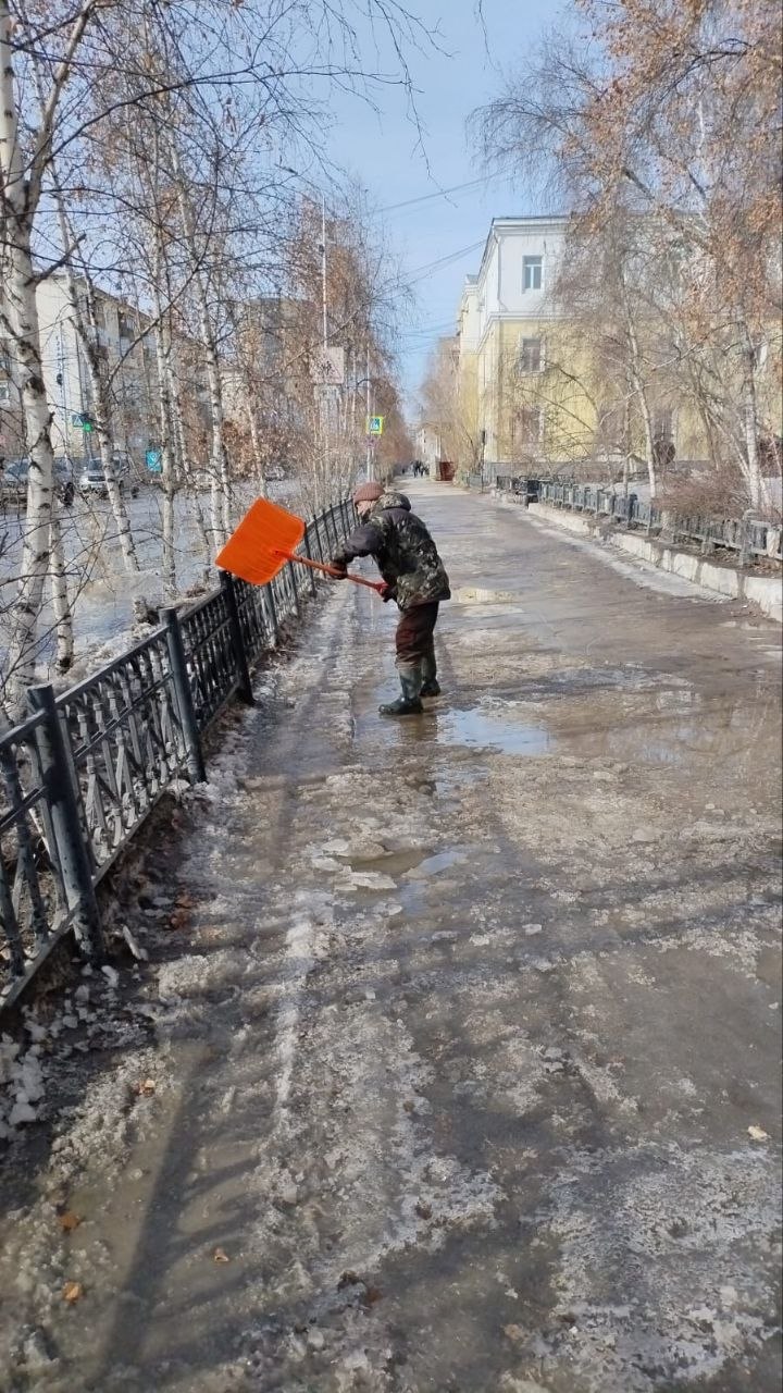 В Губинском округе муниципальные дворники активно занимаются расчисткой тротуаров.