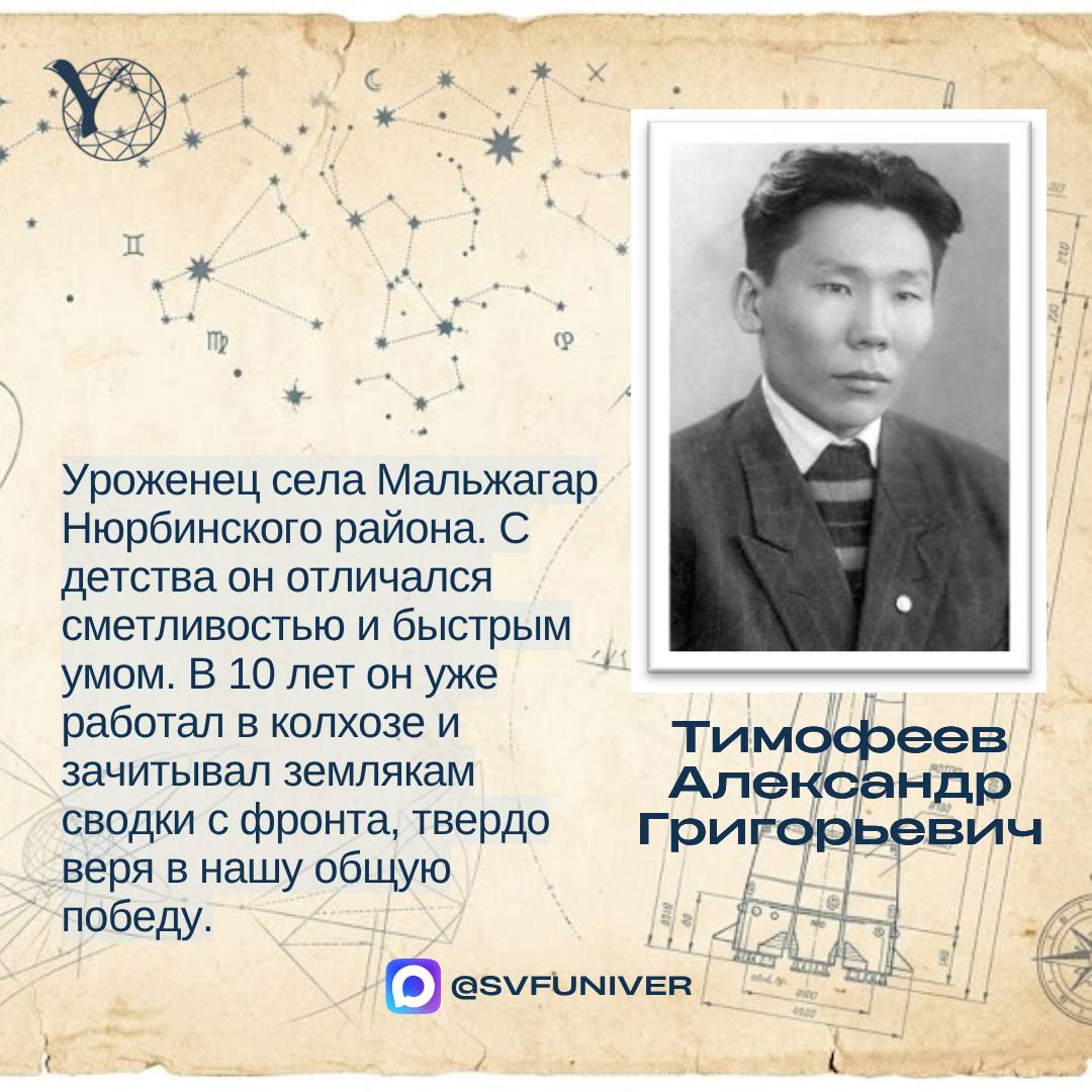 Александр Тимофеев. Инженер-радист, уроженец села Мальжагар Нюрбинского района.