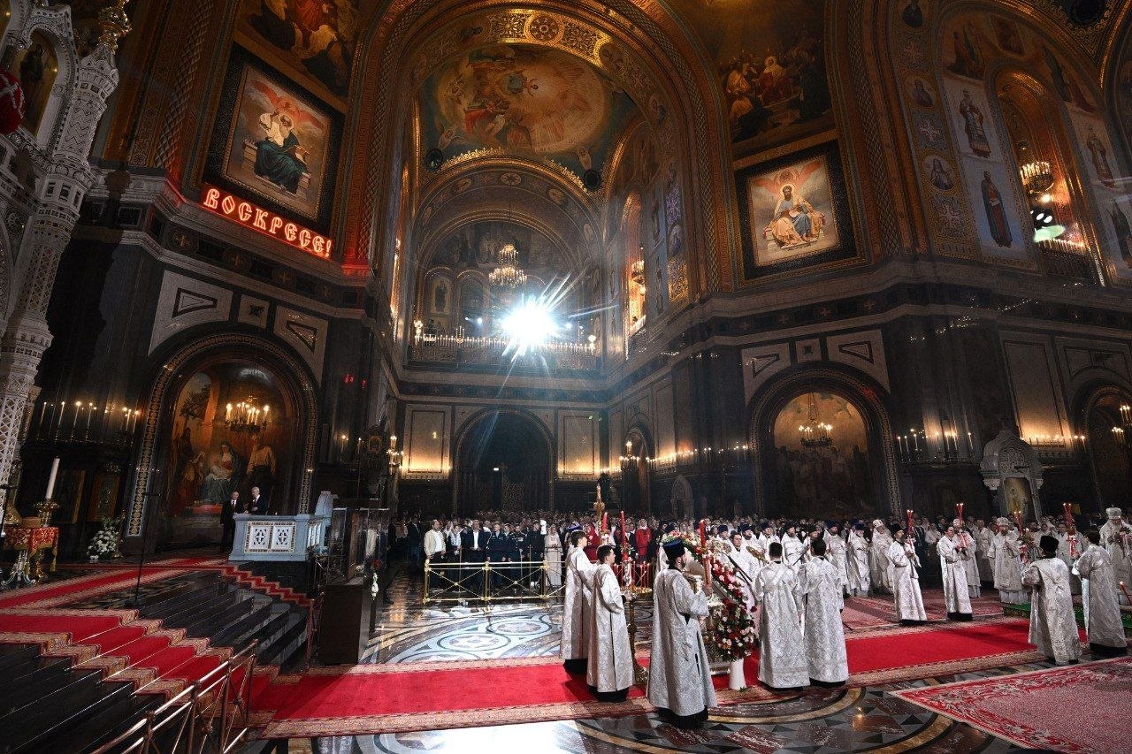 Президент вместе с мэром Москвы Сергеем Собяниным присутствовал на ночном пасхальном богослужении в храме Христа Спасителя. Службу совершил Патриарх Московский и всея Руси Кирилл.