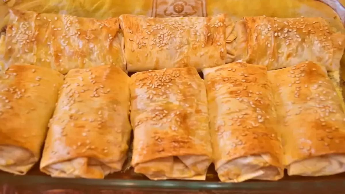 Лаваш нужно аккуратно нарезать на порционные кусочки. На каждый из них выложить достаточное количество готовой начинки, затем свернуть в рулетики и разместить в смазанной маслом форме. Перед отправкой в духовой шкаф, рулетики можно смазать взбитым яйцом и посыпать кунжутом — так они получится более аппетитными и румяными.