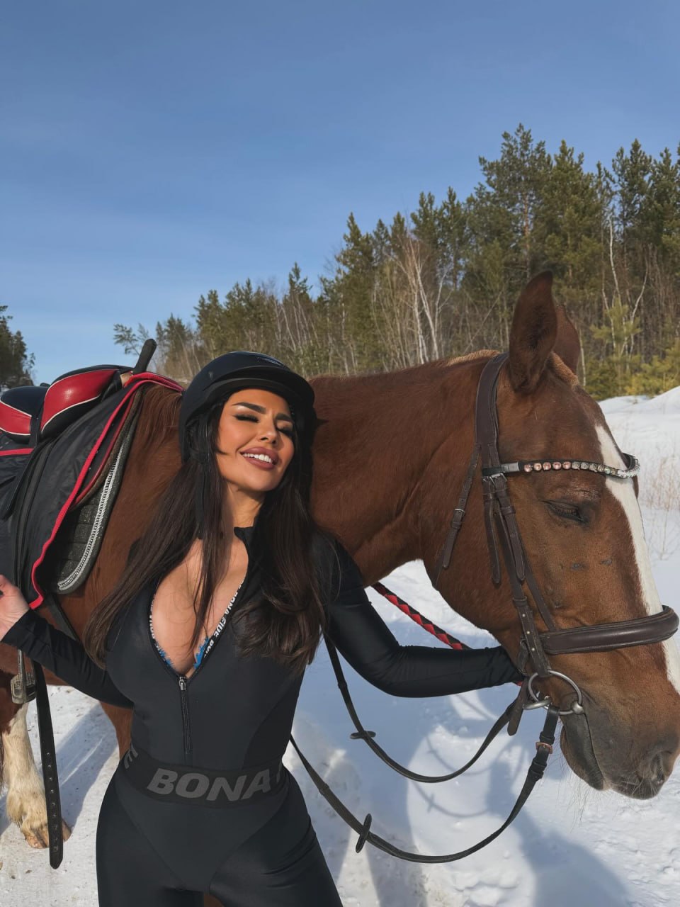 "Говорят лошади очень чувствуют энергетику человека", - сообщила красавица в запрещенной соцсети. В фотосессии участвовал конь из клуба "Мустанг" _ksk_mustang_03