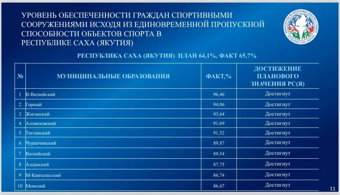 Итак, по доле систематически занимающихся физической культурой и спортом из 36 муниципальных районов и городских округов плановые значения выполнили 23 муниципалитета. В число территорий с устойчивым выполнением показателей входят Горный, Нюрбинский, Ленский, Нерюнгринский и Намский районы.