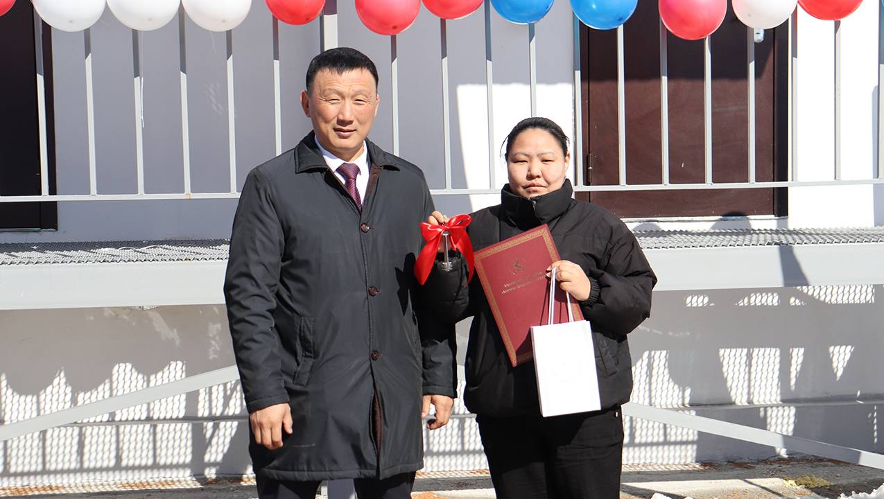 Дьиэ хааайыннарын, ыалдьыттары улуус баылыга Дмитрий Тихонов, «Арктика-строй» ХЭТ оорон тааарар отделын салайааччыта Сергей Константинов ээрдэлээтилэр.